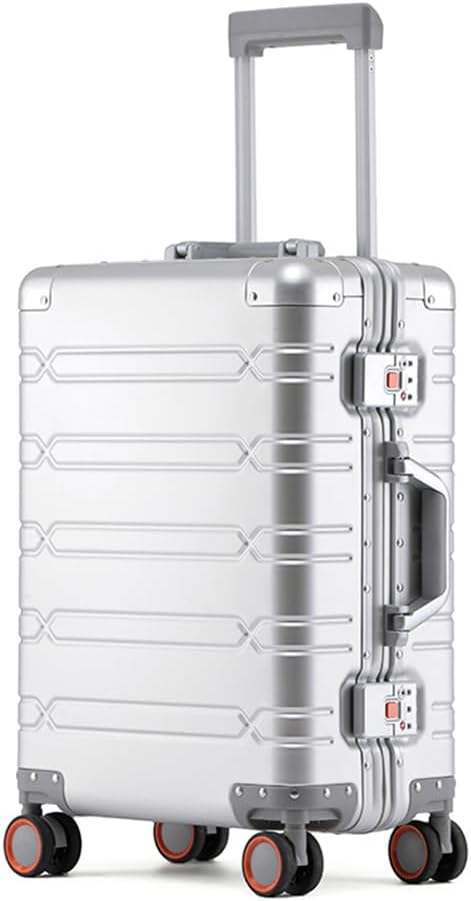 All Aluminium Hartschale Trolley Koffer Handgepäck Mit Rädern Und Schloss, Alles Metall Aufgegebenes Gepäck Hartschalenkoffer, Hartschalenkoffer Rollkoffer Für Reisen Business (Silber, 51CM-44L)