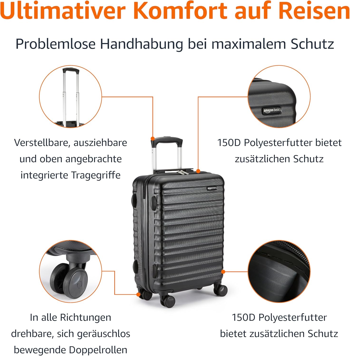 Kratzfestes, extra dickes ABS-Gehäuse und stabile Reißverschlüsse