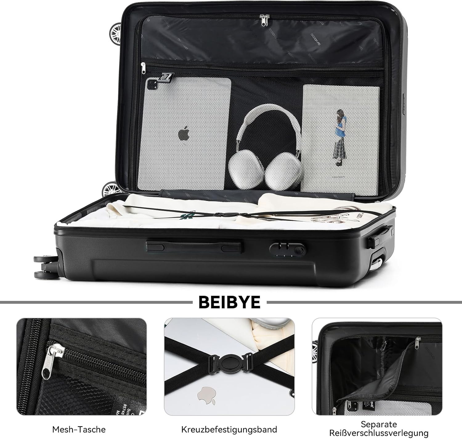 Ich bin absolut begeistert von dem BEIBYE Hartschalen-Koffer! Der Koffer überzeugt nicht nur durch sein modernes Design, sondern auch durch seine Robustheit und Stabilität. Die Hartschale schützt den Inhalt optimal, auch bei ruppigem Umgang auf Flughäfen. Selbst nach mehreren Reisen sieht der Koffer noch aus wie neu, ohne Kratzer oder Dellen.Die Leichtgängigkeit der Rollen ist ein weiteres großes Plus. Der Koffer lässt sich mühelos in alle Richtungen manövrieren, was den Transport gerade auf langen Reisen sehr angenehm macht. Dank der 360-Grad-Doppelrollen kann ich den Koffer auch durch enge Räume oder über unebene Flächen problemlos ziehen.Innen bietet der Koffer viel Stauraum mit praktischen Trennwänden und Spanngurten, die das Packen und Organisieren erleichtern. Auch der ausziehbare Teleskopgriff liegt gut in der Hand und lässt sich in mehreren Stufen verstellen, sodass der Koffer für jede Körpergröße bequem ist.Insgesamt ein sehr zuverlässiger und stilvoller Begleiter für jede Reise! Für den Preis bekommt man hier wirklich viel Qualität und Komfort. Absolute Kaufempfehlung!