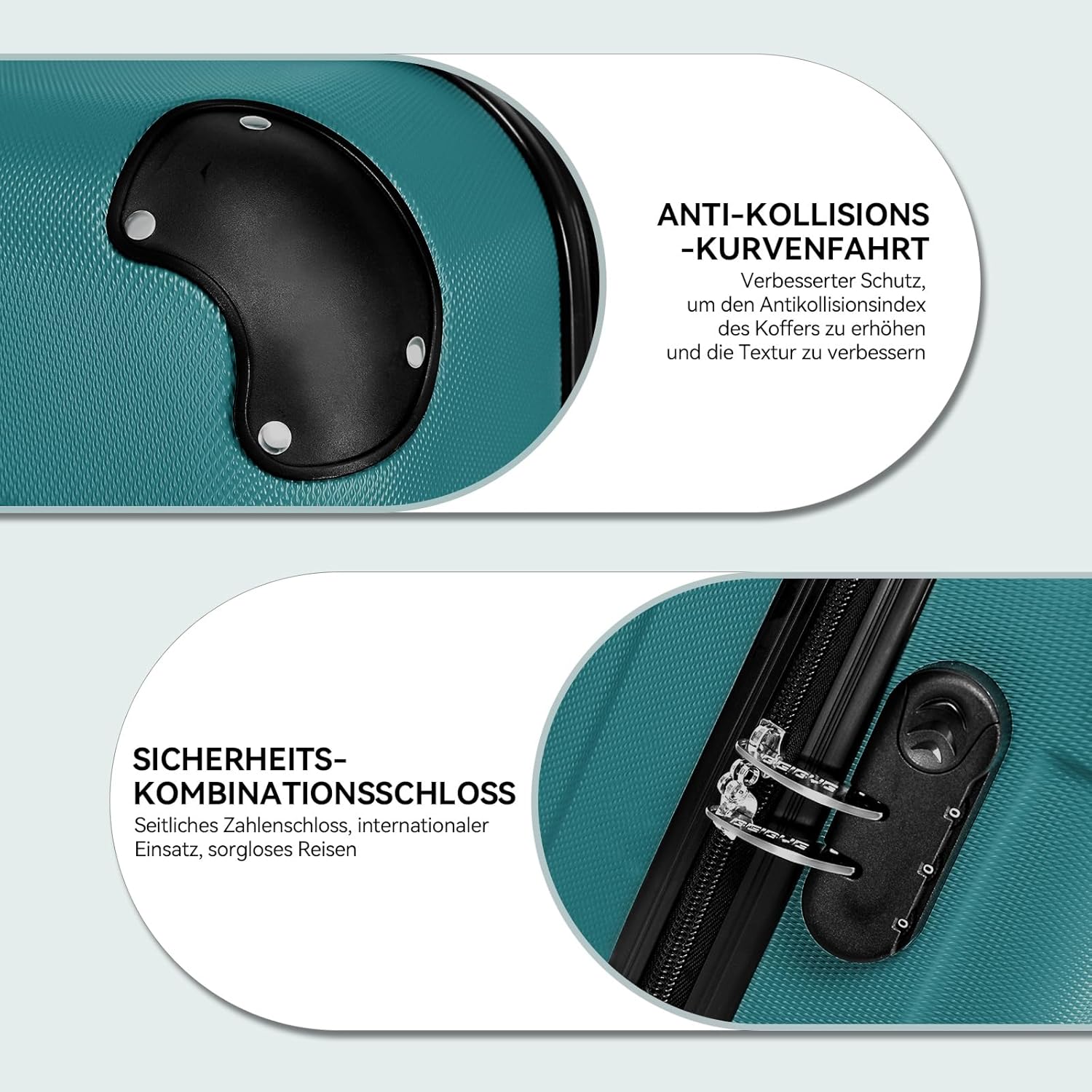 4 Zwilling-Rollen: Leicht und bequem. 4 Spinner-Rollen (360° drehbar) für perfekte Mobilität