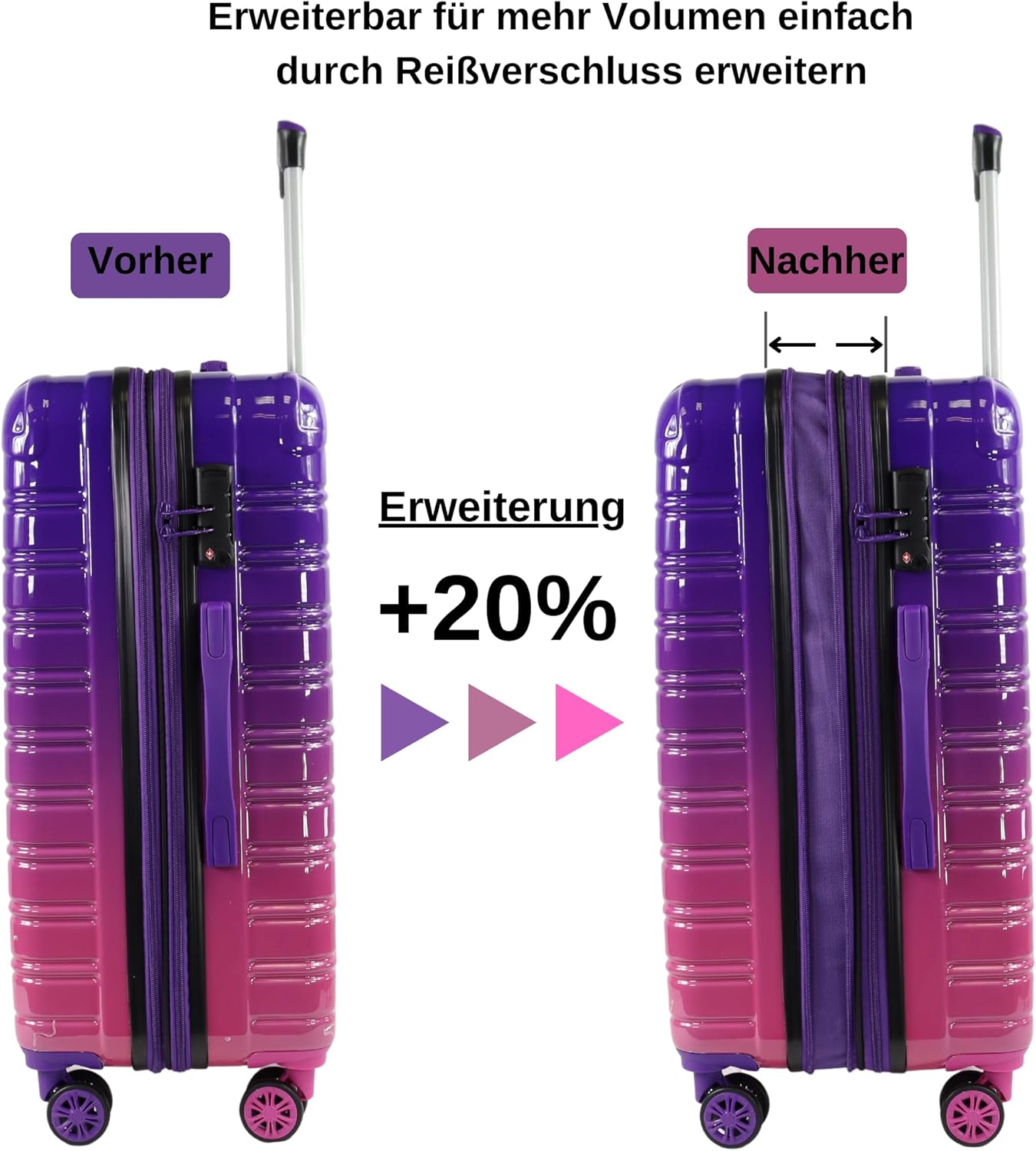 Blade Erweiterbares Handgepäck – Hartschalen Koffer Trolley – Leichter Reisekoffer Handgepäck aus ABS+PC mit TSA Schloss – 4 Spinner Räder Koffer- Rollkoffer (Lila-L)