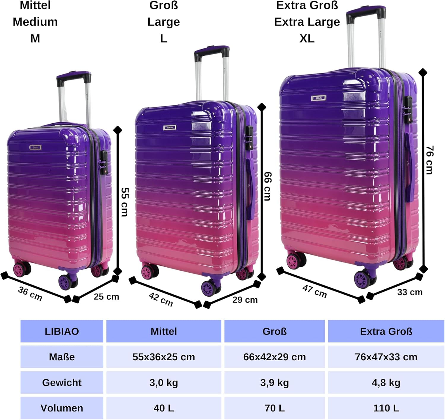 【 3-TEILIGES KOFFERSET- PERFEKTES GESCHENK 】Unser Reisekofferset besteht aus einem mittleren (M) Handgepäckkoffer (55 x 36 x 25 cm), (L) einem großen Koffer (66 x 42 x 29 cm) und (XL) einem großen Koffer (76 x 47 x 33 cm)