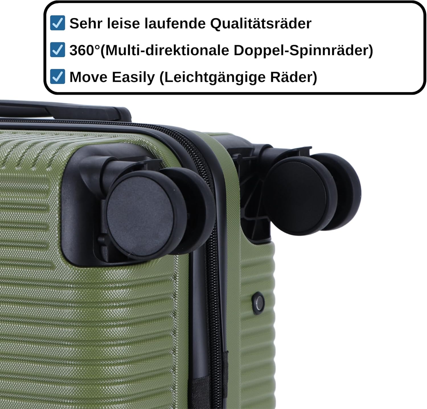 【LEISES und SANFTES GLEITEN】Das Blade Kofferset, ausgestattet mit vier leise und sanft gleitenden Spinner-Rädern, bietet ein herausragendes Steuerungssystem für die Richtungskontrolle. Erleben Sie die perfekte Manövrierbarkeit (360° drehbar) von Blade auf Ihrer Reise!