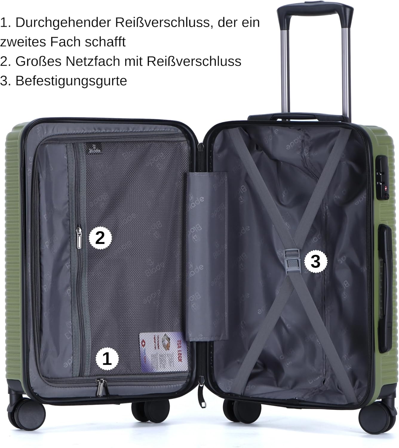 【SICHER REISEN MIT TSA-SCHLOSS】Genießen Sie eine sorglose Reise mit dem BLADE Gepäckset, das über ein von der TSA genehmigtes Schloss verfügt. Dieses Schloss erlaubt es TSA-Agenten, Ihre Taschen zu kontrollieren, ohne sie zu beschädigen. Für entspanntes Unterwegssein mit sicherem Gepäck.