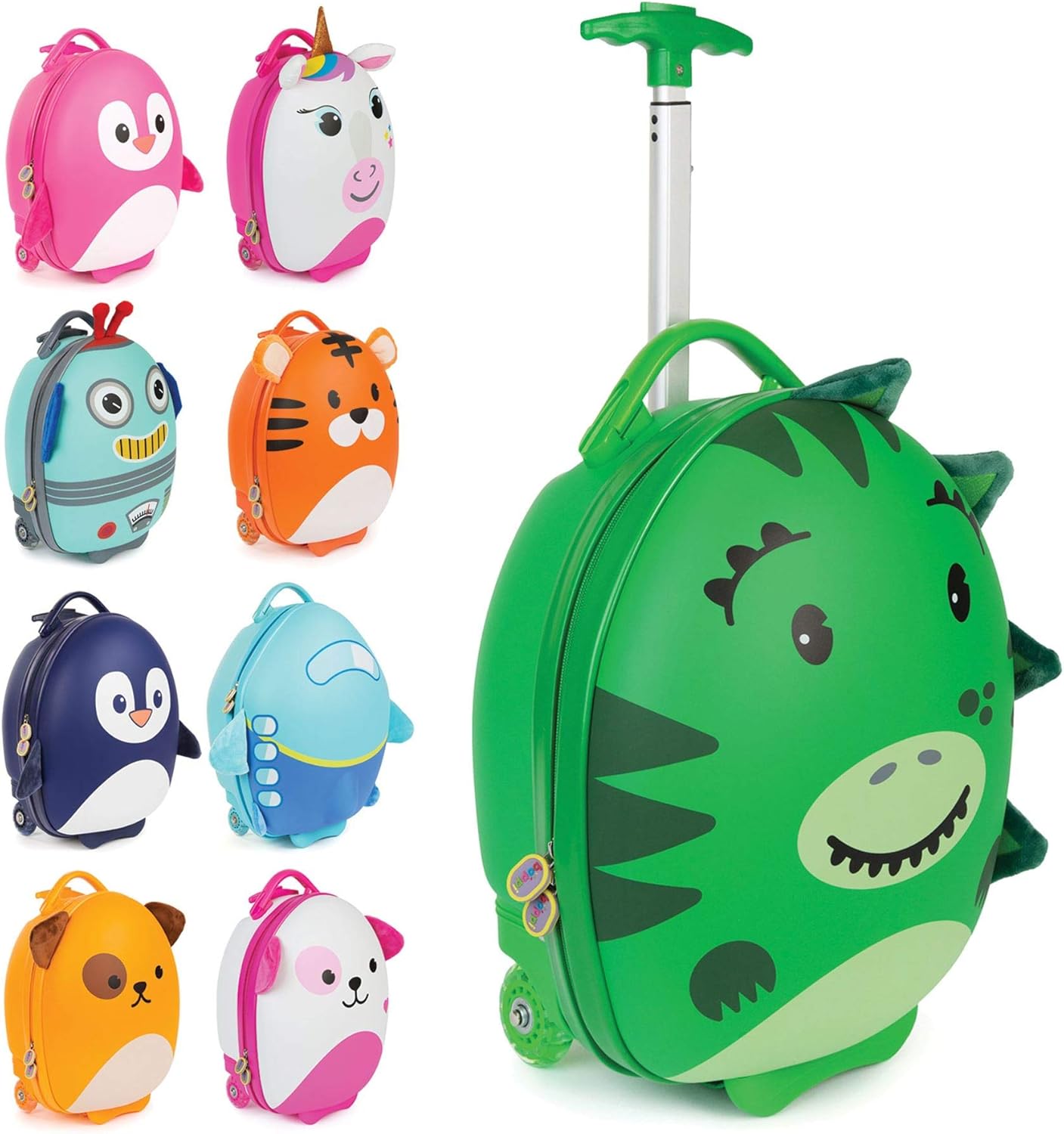 Got the unicorn and green Dino both came packaged together and are smaller than you’d think. Think personal item not carryon size. Super cute with kids rolling them around and packing them. Would buy again. High quality and durable material.