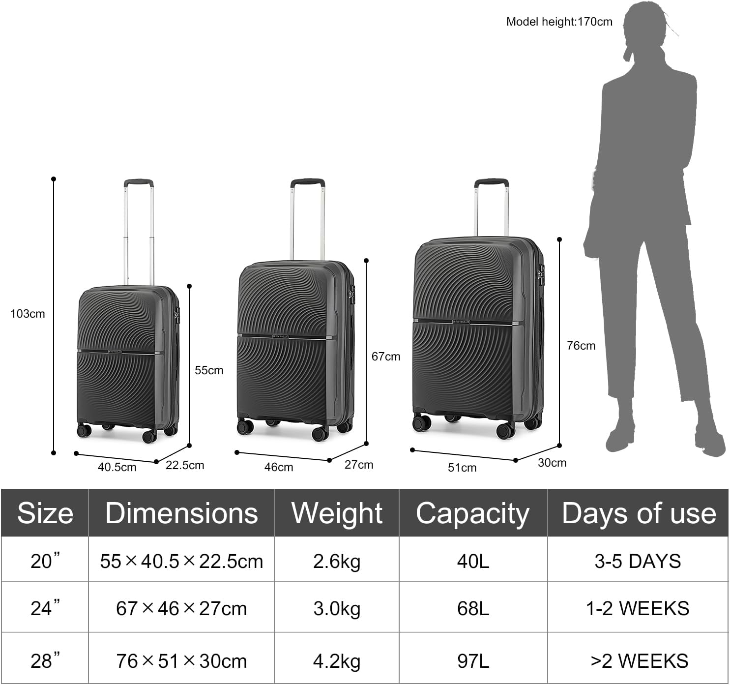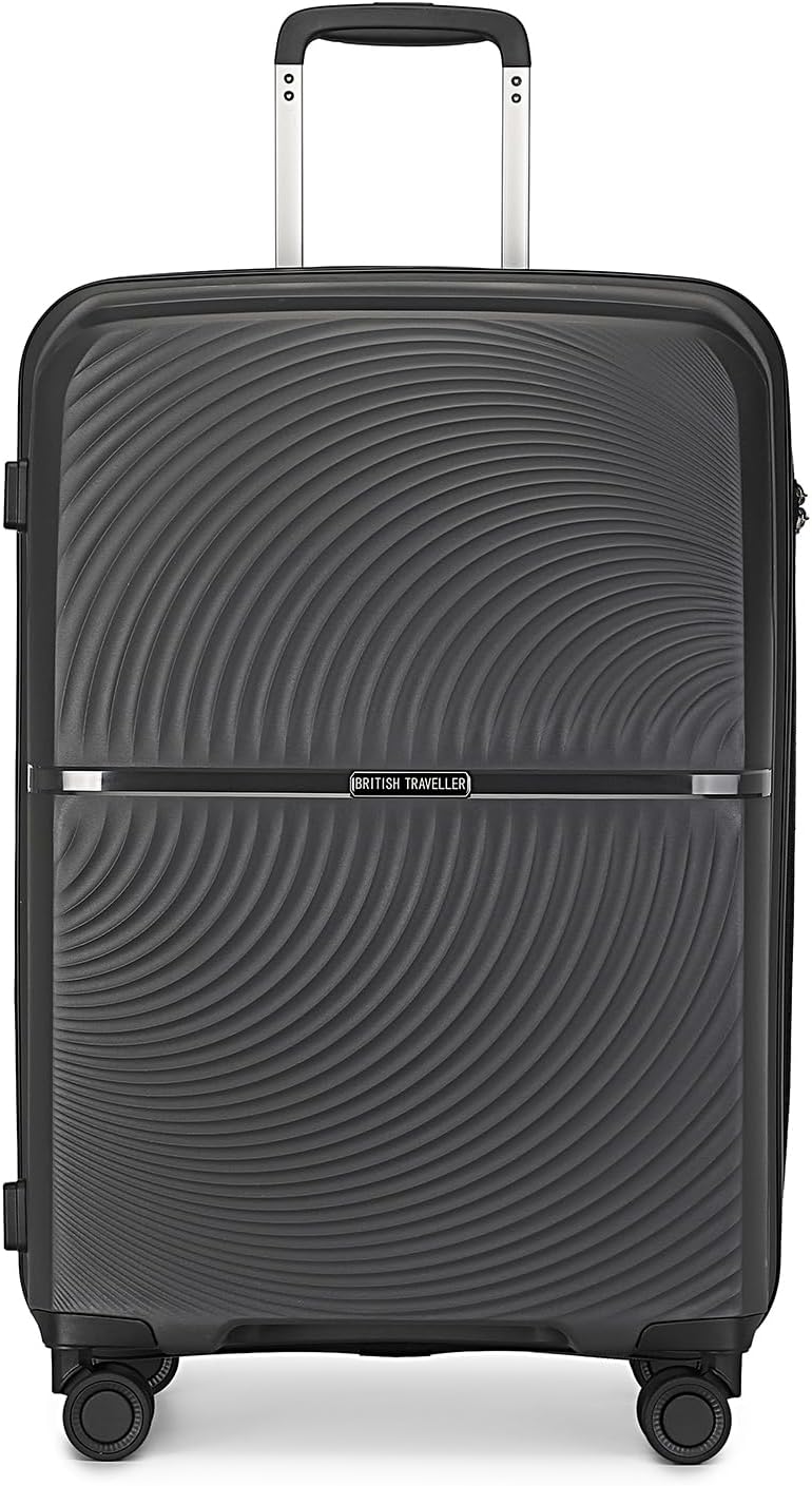 The British Traveller 24″ Suitcase is a stylish, lightweight travel companion crafted from durable polypropylene. This hard-shell trolley features a sleek black finish, making it an ideal choice for casual getaways and business trips. Designed for optimal convenience, it meets cabin size requirements and includes a TSA-approved lock for added travel security. With four smooth-rolling spinner wheels, manoeuvring through busy airports or train stations becomes effortless. Perfect for those who value fashion and functionality in their travel gear, this suitcase ensures a reliable and organized packing experience.