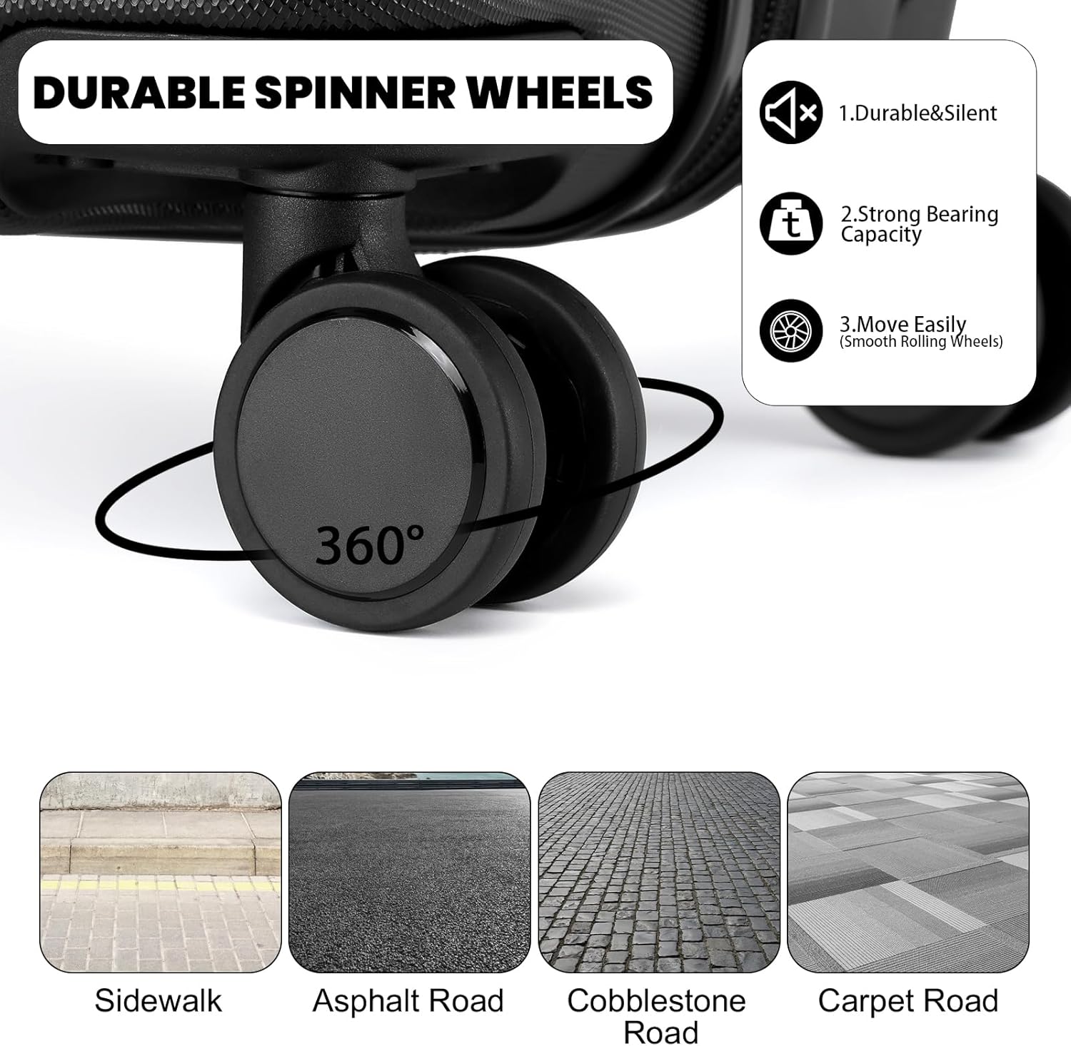 TSA-Schloss und 4 TPE Zwillingsrollen – Der Reisekoffer ist absolut sicher, weill der Koffer ein 3 digitale TSA-Schloss und Stabil und glatt Reißverschluss eingebaut hat, um Ihre Sachen zu schützen. Gleichzeitig hat der Koffer 4 leise 360-Grad drehbare TPE-Spinnerräder, die vielmal und bei verschiedene Bedingungen getestet wird. Macht Ihre Reisen um die Welt viel praktisch und angenem!