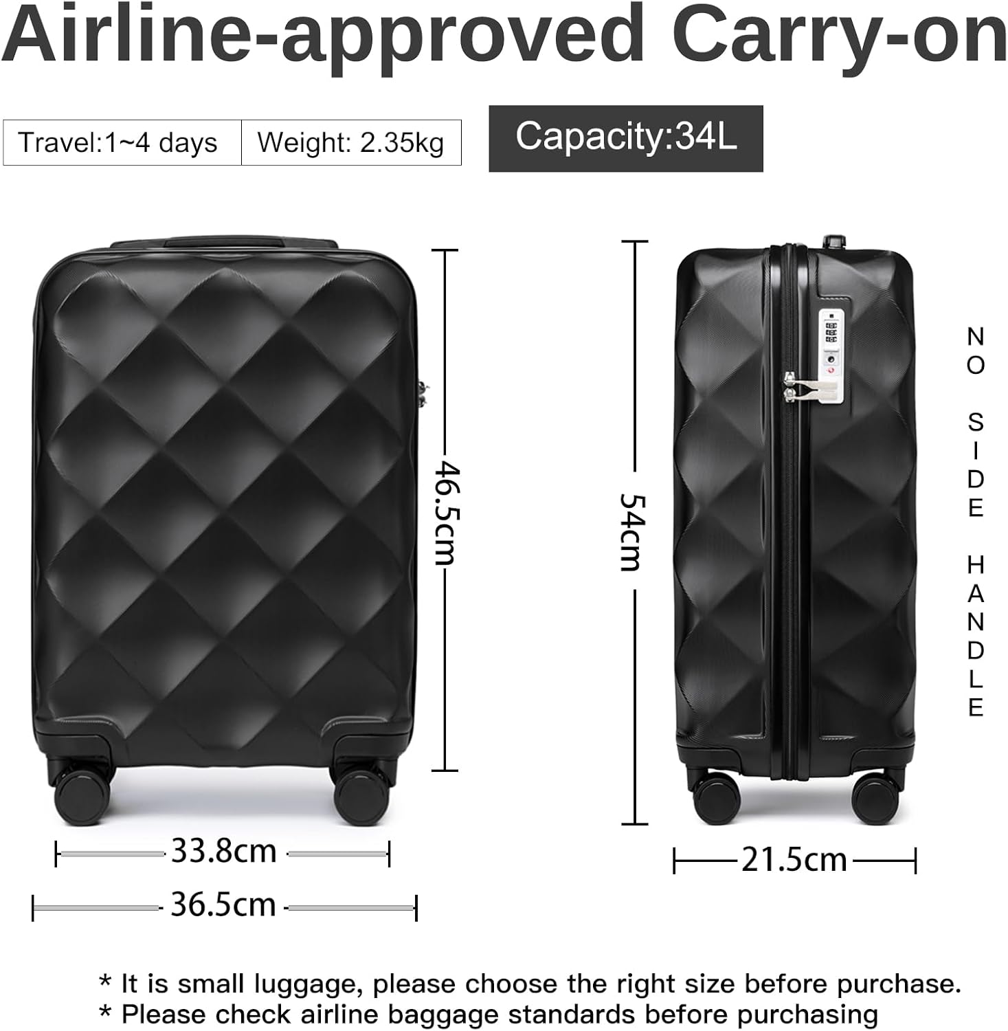 Für Meisten Fluggesellschaft Geeignet – Der Handgepäck Koffer ist 54*36.5*21.5cm(Rad und Griffhöhe inbegriffen), INNENABMESSUNGEN DES KASTENS: 46.5*33.8*21.5cm, 34L; 2.35kg, der in der obenen Gepäckablage gut gelegt wird, um die Fluggebühren zu vermeiden.Rollkoffer perfekt für 3-5 Tage Urlaub. (Bitte prüfen Sie vor dem Kauf die Gepäckstandards der Fluggesellschaften. Dass es ein kleiner Koffer ist, wenn Sie eine größere Kapazität benötigen, wählen Sie bitte eine andere Größe.)