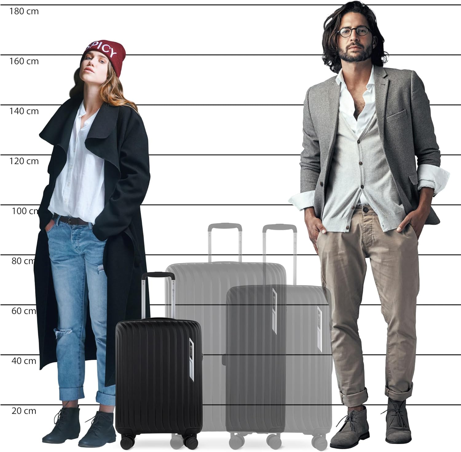 VIEL PLATZ – Maße: 55×20,5×38 cm (HxBxL – inkl. Rollen & Griffe), Gewicht: 2,20 kg und Fassungsvermögen von ca. 35 Litern. Die Abmessungen können je nach Fluggesellschaft variieren, aber der Koffer entspricht in der Regel den Handgepäckbestimmungen