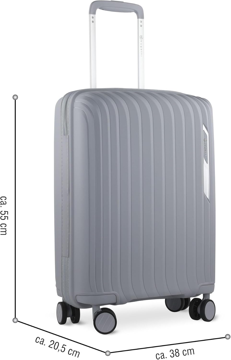 bugatti Hera Hartschalen-Koffer S mit 4-Rollen, Leichter Reise-Koffer aus PP Light, Handgepäck-Trolley, hellgrau