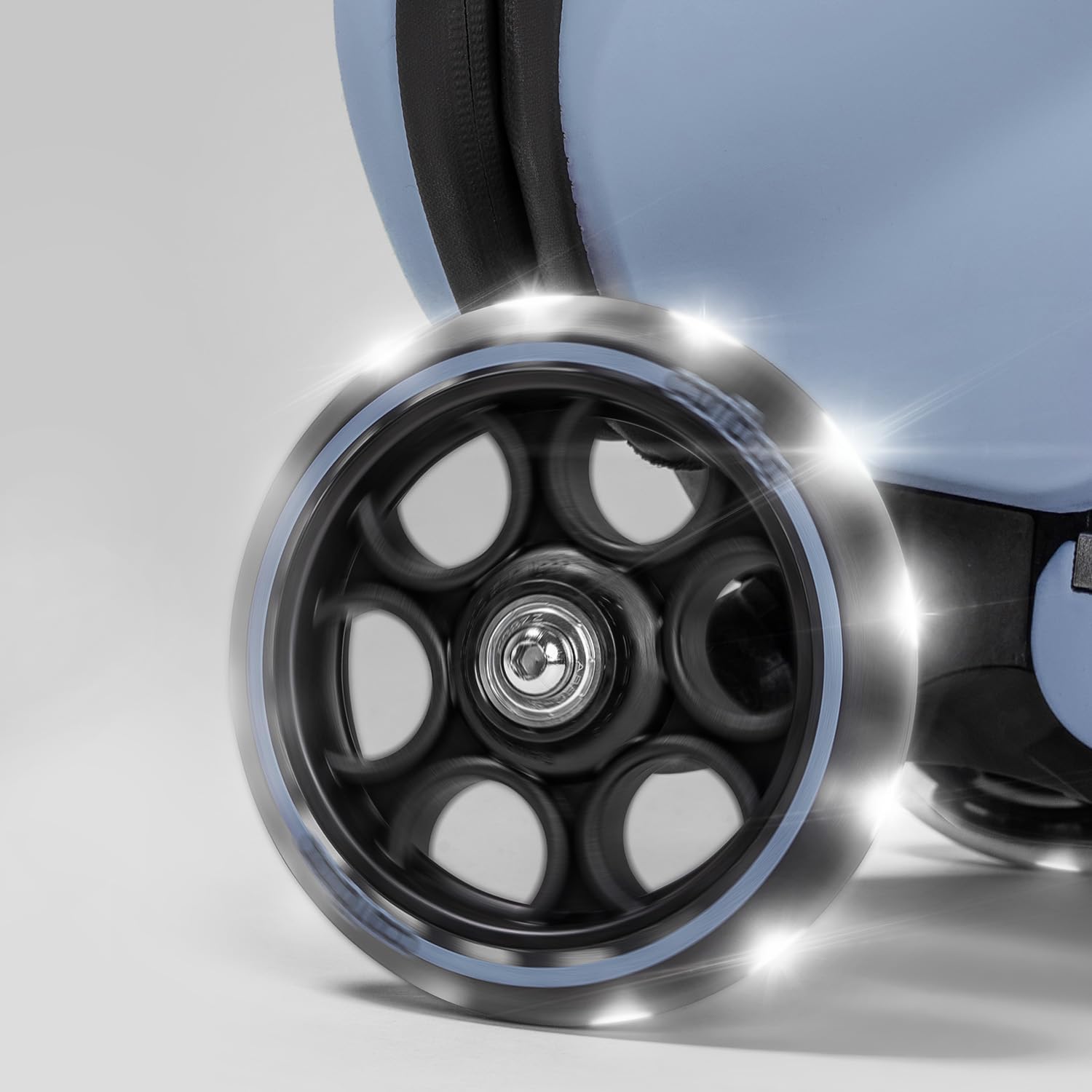 Raddurchmesser: vorne 12 cm, hinten 7,7 cm; Gewicht: 2,6 kg; Alter: 2+; Maximales Benutzergewicht: 50 kg; Farbe: Blau. Der Koffer entspricht den Handgepäckstandards der meisten Fluggesellschaften.