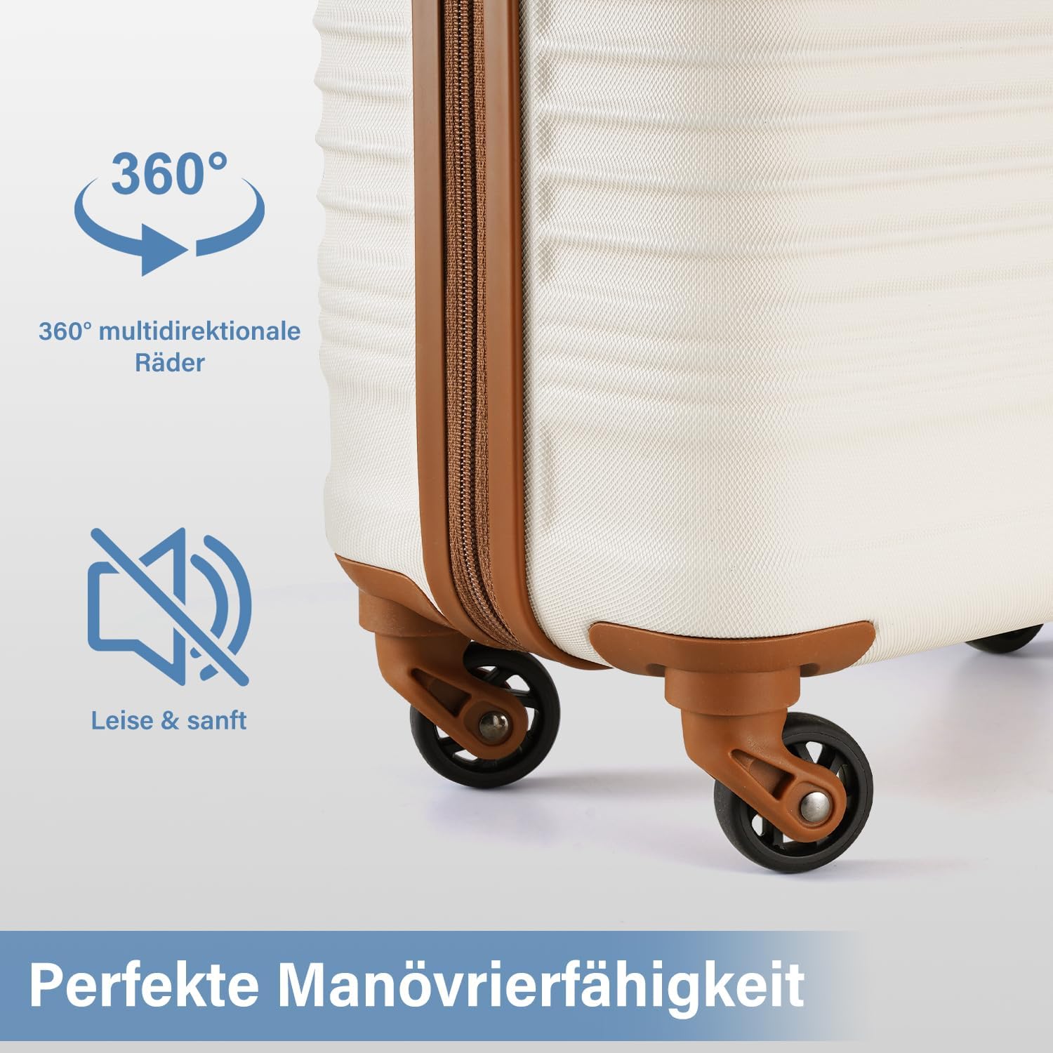4 LANGLEBIGE SPINNER-RÄDER: 4 multidirektionale, geräuscharme Spinner-Räder können um 360° gedreht werden, was Ihre Reise reibungsloser und müheloser macht. Die Räder haben die Tests auf verschiedenen Straßenbedingungen mit großer Ausdauer bestanden.