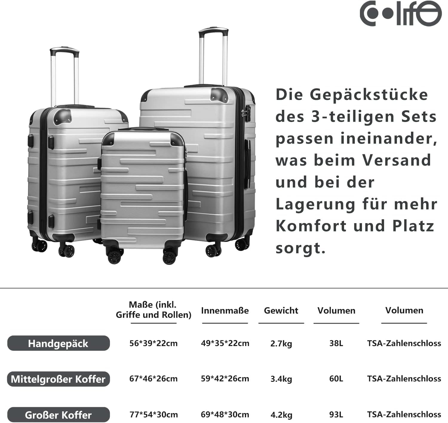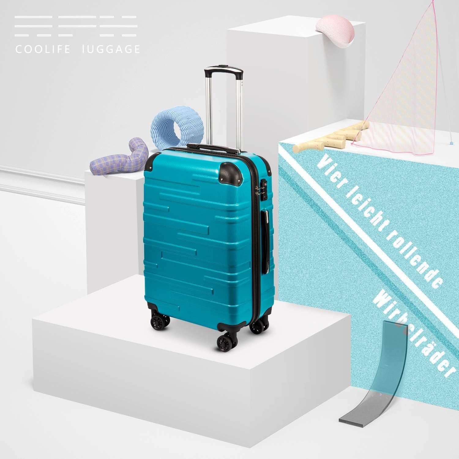 COOLIFE Hartschalen-Koffer Rollkoffer Reisekoffer Vergrößerbares Gepäck (Nur Großer Koffer Erweiterbar) ABS Material mit TSA-Schloss und 4 Rollen