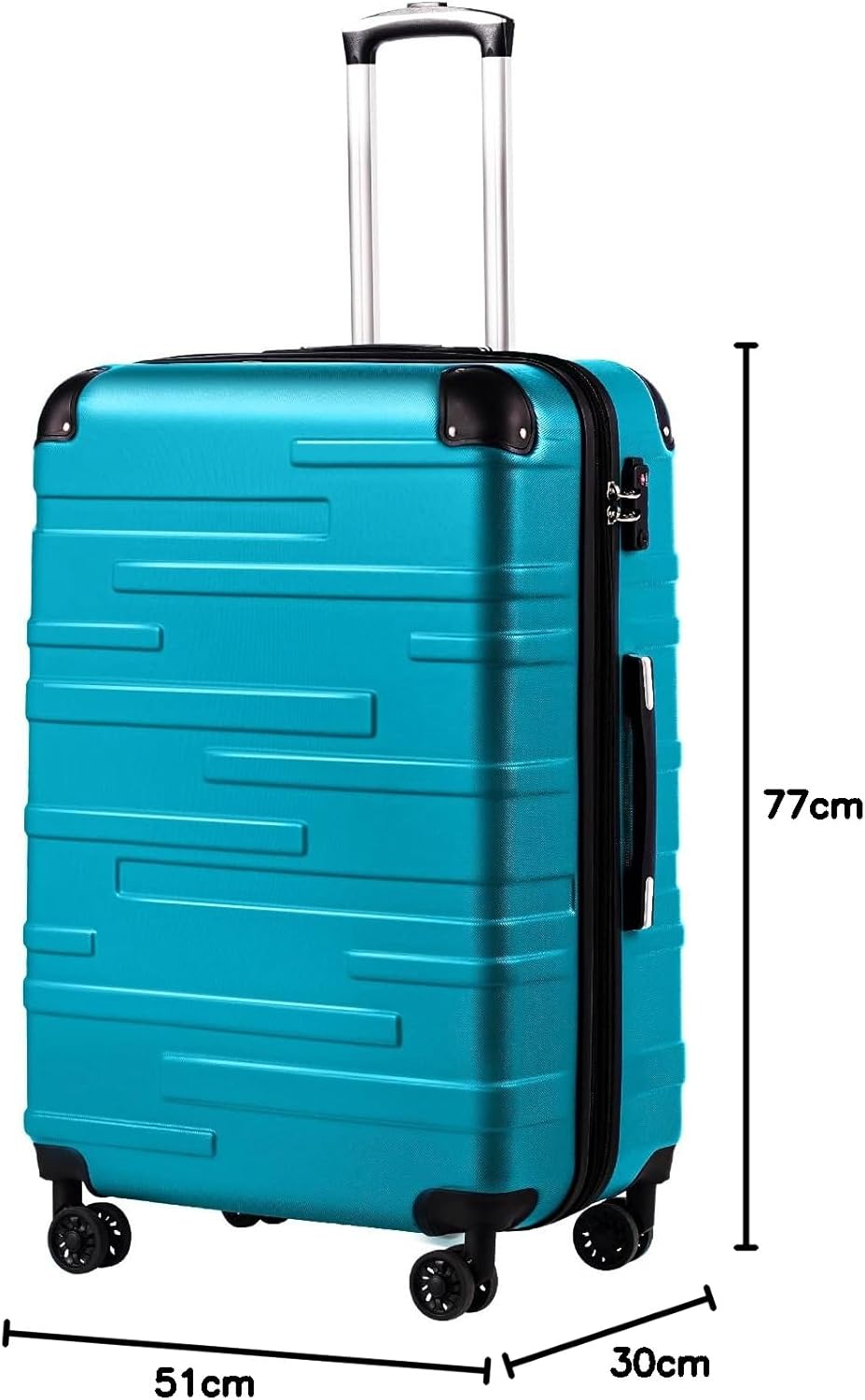 ABS HARD SHELL + ALUMINIUM COPING GRIFF: Unsere Koffer sind aus hartem ABS Material gefertigt, sie sind stark, leicht und kratzfest. Der Aluminium Teleskopgriff lässt sich der Koffer bei geringem Kraftaufwand schieben oder ziehen.