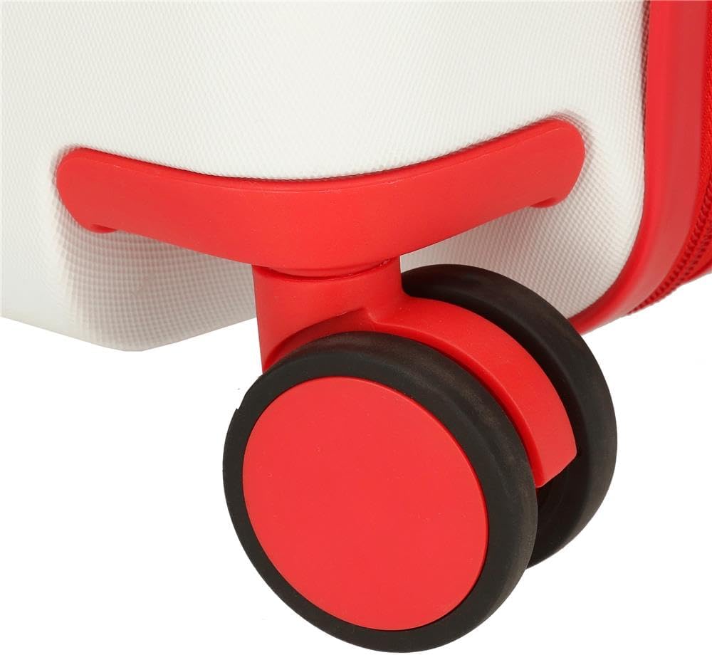 schön, hochwertig, leicht. Ein Kind kann sitzen und diesen Koffer reiten. Noch besser wäre es, wenn sich die Vorderräder drehen. In diesem Fall kann das Kind nur geradeaus fahren. Beim Wenden kann der Koffer herunterfallen.