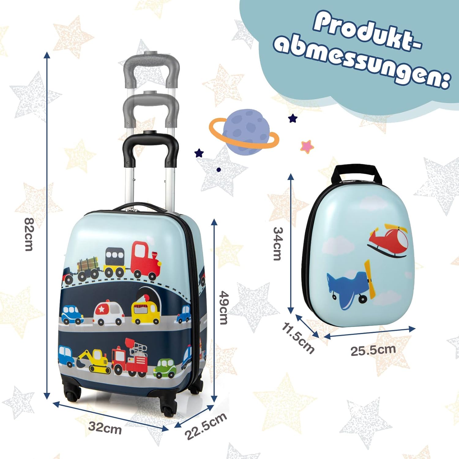 DREAMADE Kinderkoffer & Rucksack Set, Blau-Auto, 16 Zoll+12 Zoll