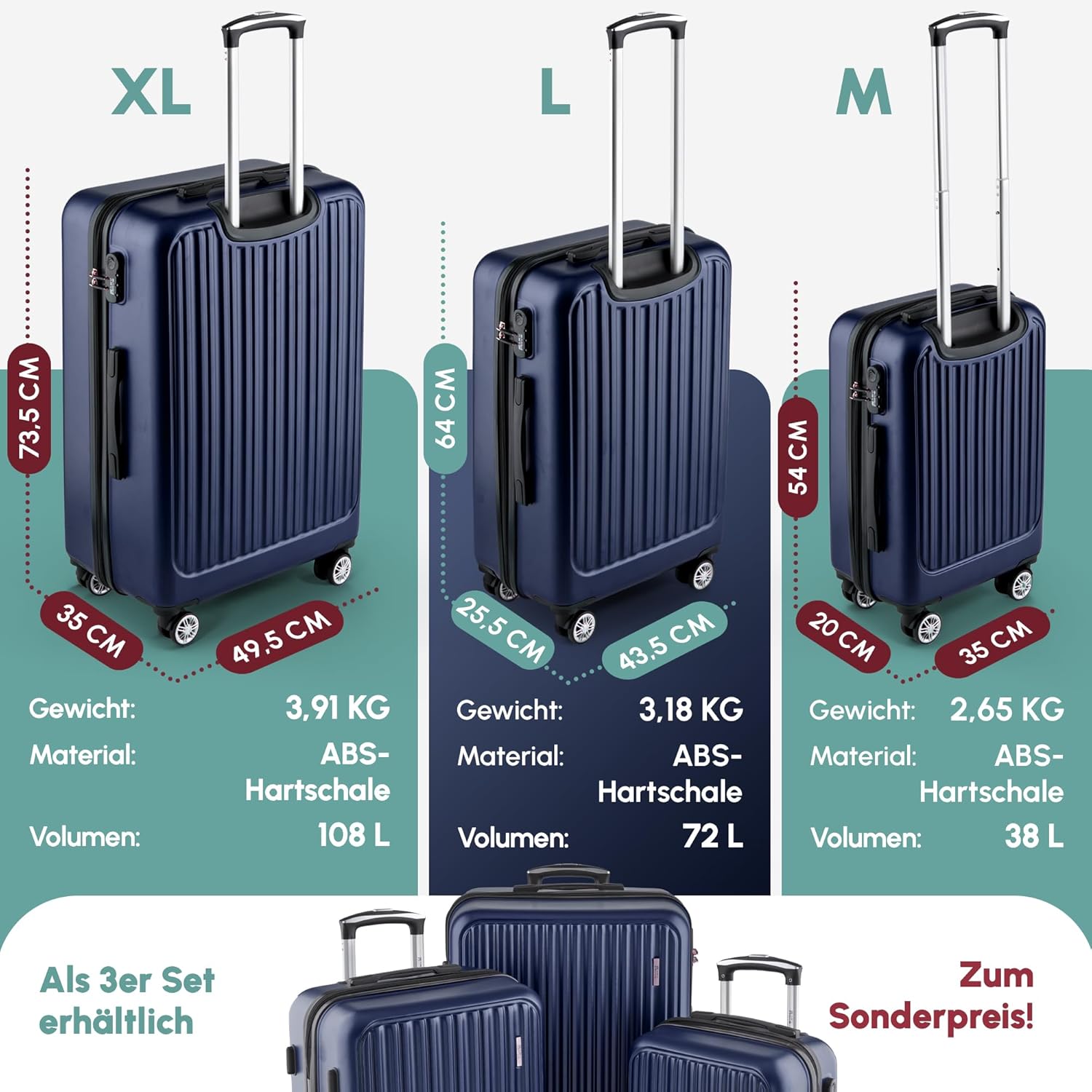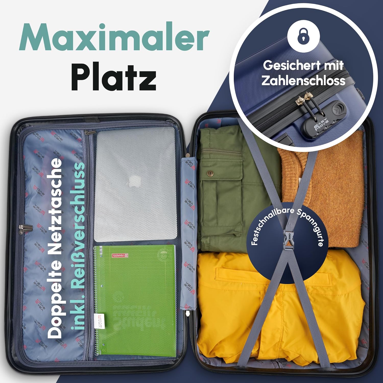 ROBUSTER ABS HARTSCHALE KOFFER – SCHUTZ BEI JEDER REISE: Hergestellt aus 100 % stoßfestem ABS-Material bietet der Trolley zuverlässigen Schutz für Ihr Gepäck, egal ob Kurztrip oder Langstrecke. Ideal als langlebiger Koffer für Urlaub oder Businessreisen.