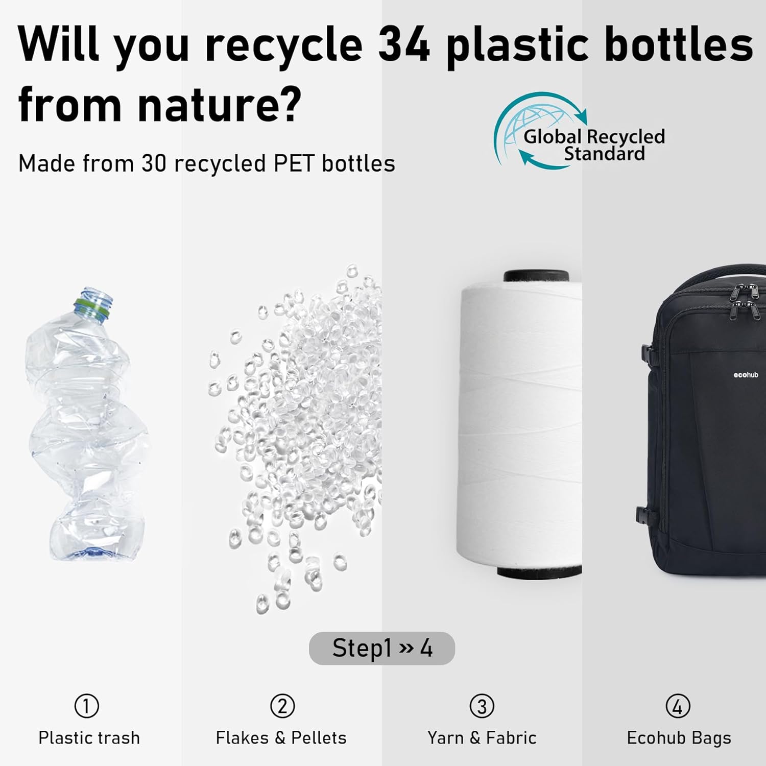 【Reisefreundlich】: ECOHUB kofferrucksack wiegt nur 0,74 kg. Vorder- und Seitengriffe für vielseitiges Tragen. Das Kabelloch ermöglicht einfaches Aufladen unterwegs. Gepolsterter Rücken und Schultergurte für Komfort und Atmungsaktivität. Der wasserabweisende und reißfeste Stoff besteht aus 34 recycelten PLASTIC PET Flaschen und ist vom GRS zertifiziert.