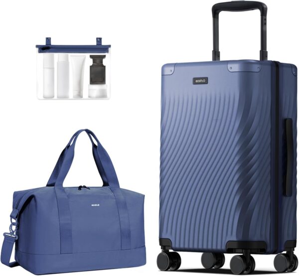ECOHUB Leicht Handgepäck Koffer Trolley, 20“ Recyceln PC Hartschalenkoffer, 55x40x23cm Erweiterbar Reisekoffer mit 4 Rollen & TSA Schloss, 2 Teilig Rollkoffer mit 30L Handgepäck Tashe, Luggage(Blau)