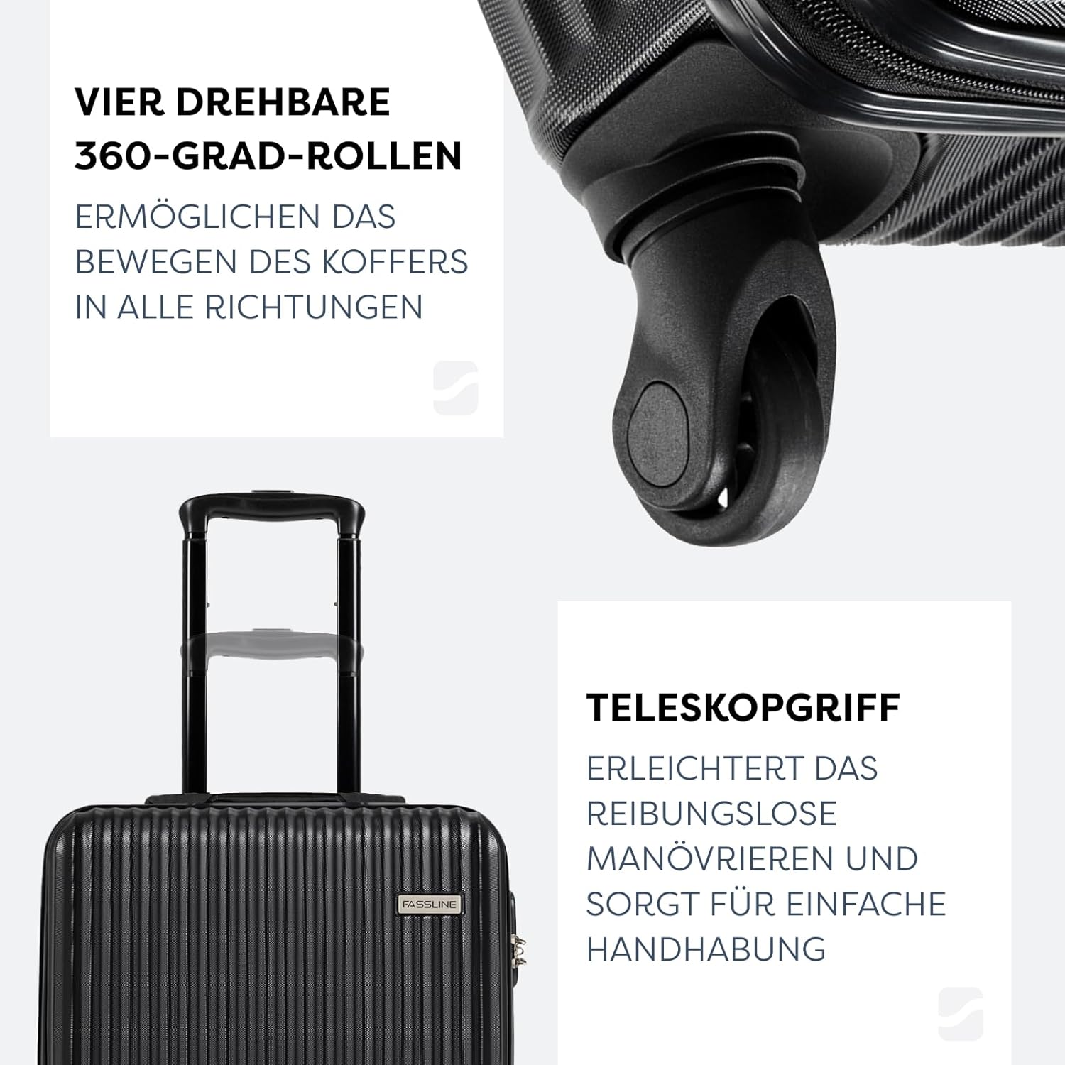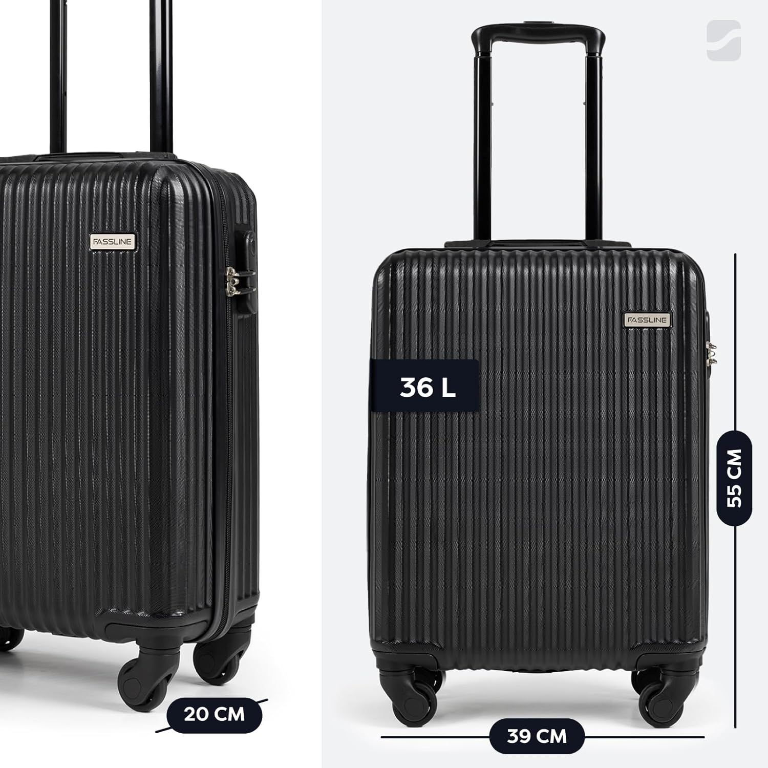 FASSLINE Kabinenkoffer, 36 l ABS, 360°-Spinner-Rollen, Zahlenschloss, Teleskopgriff