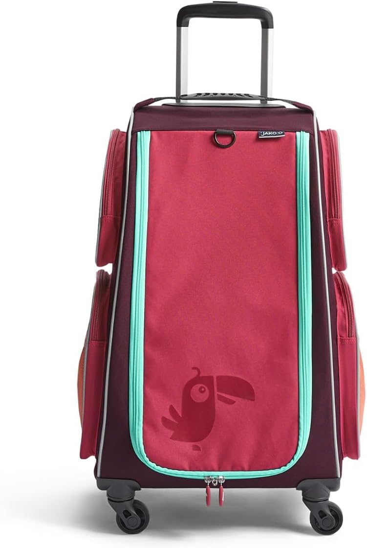 HABA Kinder-Schranktrolley Beere – Nachhaltiger Kinder-Koffer aus recyceltem Polyester, inkl. Schmutzwäschebeutel, 3 herausnehmbaren Böden, 4 Außentaschen und 4 Rollen – Ab 5 Jahren – 1442797001