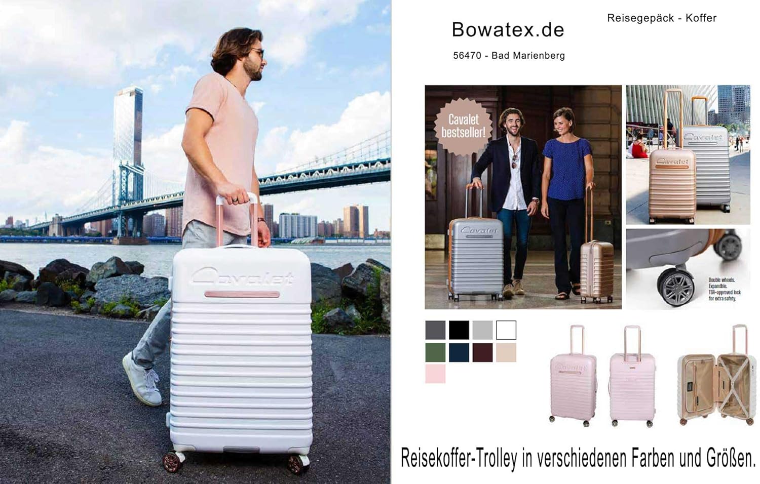 Weiße Robuste und kleine Kabinen Bordgepäck, Marken Koffer Hartschalen Reisekoffer Trolley auf Räder 54 cm von Cavalet bei BOWATEX zu Kaufen.