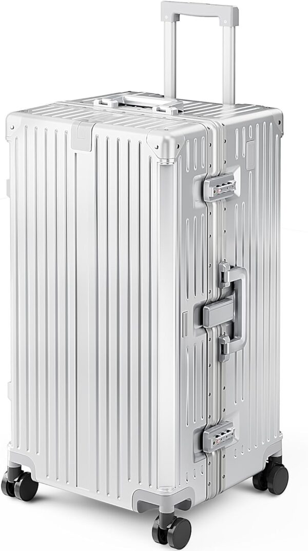 Der Koffer ist extrem geräumig und robust, ideal für Langstreckenreisen dank seiner stabilen Hartschale aus Polycarbonat und Alu.Dank der 4 leisen Rollen und dem praktischen TSA-Schloss lässt er sich sehr angenehm und sicher transportieren.