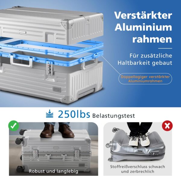 Hochwertige Aluminium- und PC-Konstruktion: Der Alphasac Koffer vereint ein robustes Aluminiumrahmen-Design mit einer stabilen PC-Außenschale. Diese einzigartige Bauweise gewährleistet einen hohen Schutz beim Reisen. Es schützt vor Beschädigungen durch Druck und Stöße, die bei Langstreckentransport auftreten können. Mit dieser Kombination aus Leichtigkeit und Festigkeit ist der Koffer die perfekte Wahl für Handgepäck und bietet sowohl Stabilität als auch Langlebigkeit