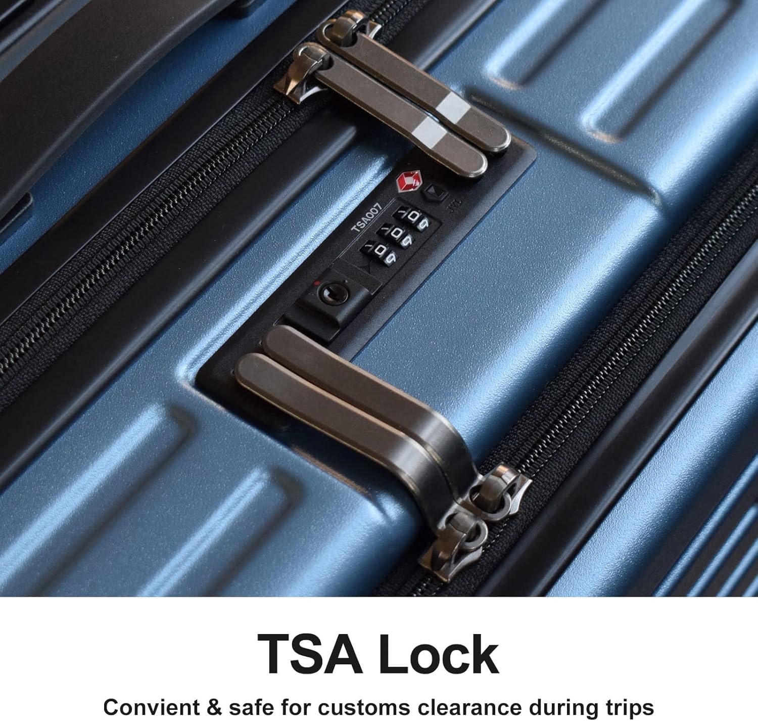 TSA Passwortschloss: das TSA-Passwortschloss ist an der Oberseite des Körpers entworfen, um den Erwerb häufig verwendeter Gegenstände zu erleichtern, und das Zugkopfdesign passt besser zur Gesamtform des Koffers. Die Zollabfertigung ist bequem, sicher, arbeitssparend.