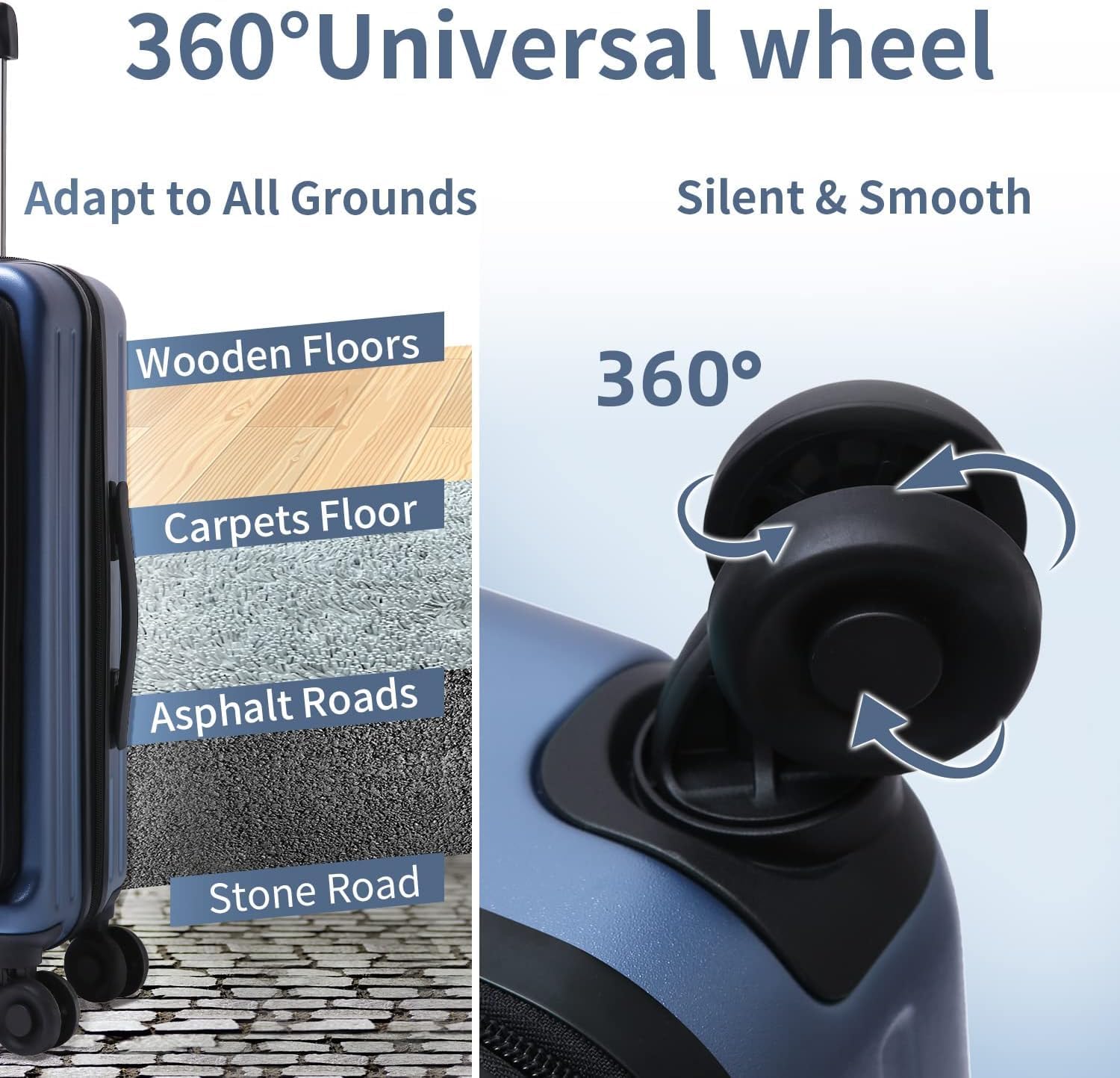 ABS + PC Material & Universalschweifrad um 360 °: leichte und widerstandsfähigere ABS + PC-Materialien, dreischichtige Kompressionsstrukturplatten, starke Verstärkung und empfindlicher elektronischer Körnungsprozess sind komplexer und glänzender. Universalschweifrad um 360 ° aus hochelastischem und verschleißfestem PU-Material gefertigt, ist es leise und verschleißfest, mit hervorragender Geräuschdämmung, wenn es geschoben wird, und passt sich einer Vielzahl von Oberflächen an.