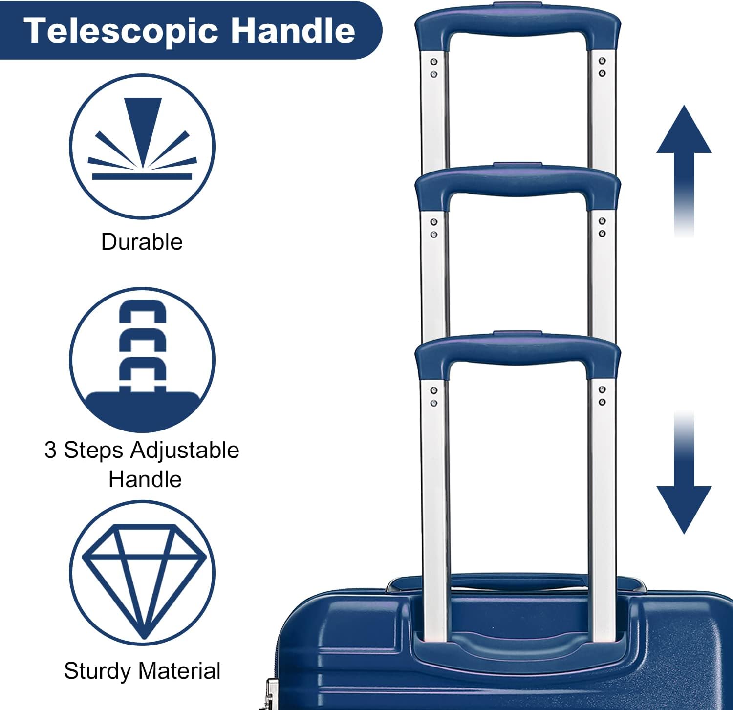 3 Höhe-Stufen Trolleygriff – Der Reisekoffer hat einen 3 Höhe-Stufen verstellbaren Griff. Der Teleskopgriff verwendet Aluminium innen und Eisen draußen, stabiler, kratzfester und haltbarer.