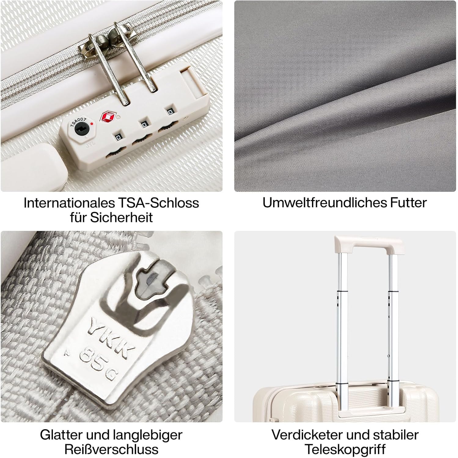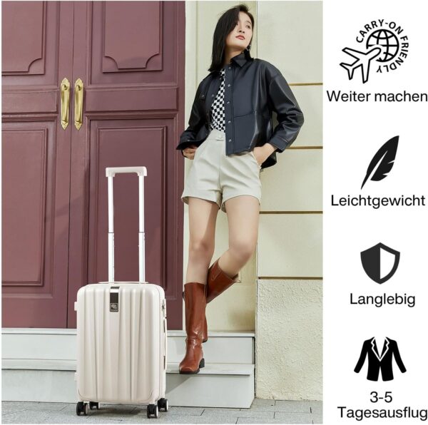Hanke Erweiterbar Handgepäck Koffer PC Hartschalenkoffer Trolley Koffer mit Rollen Reisekoffer mit TSA-Lock 49cm (37L), Elfenbein