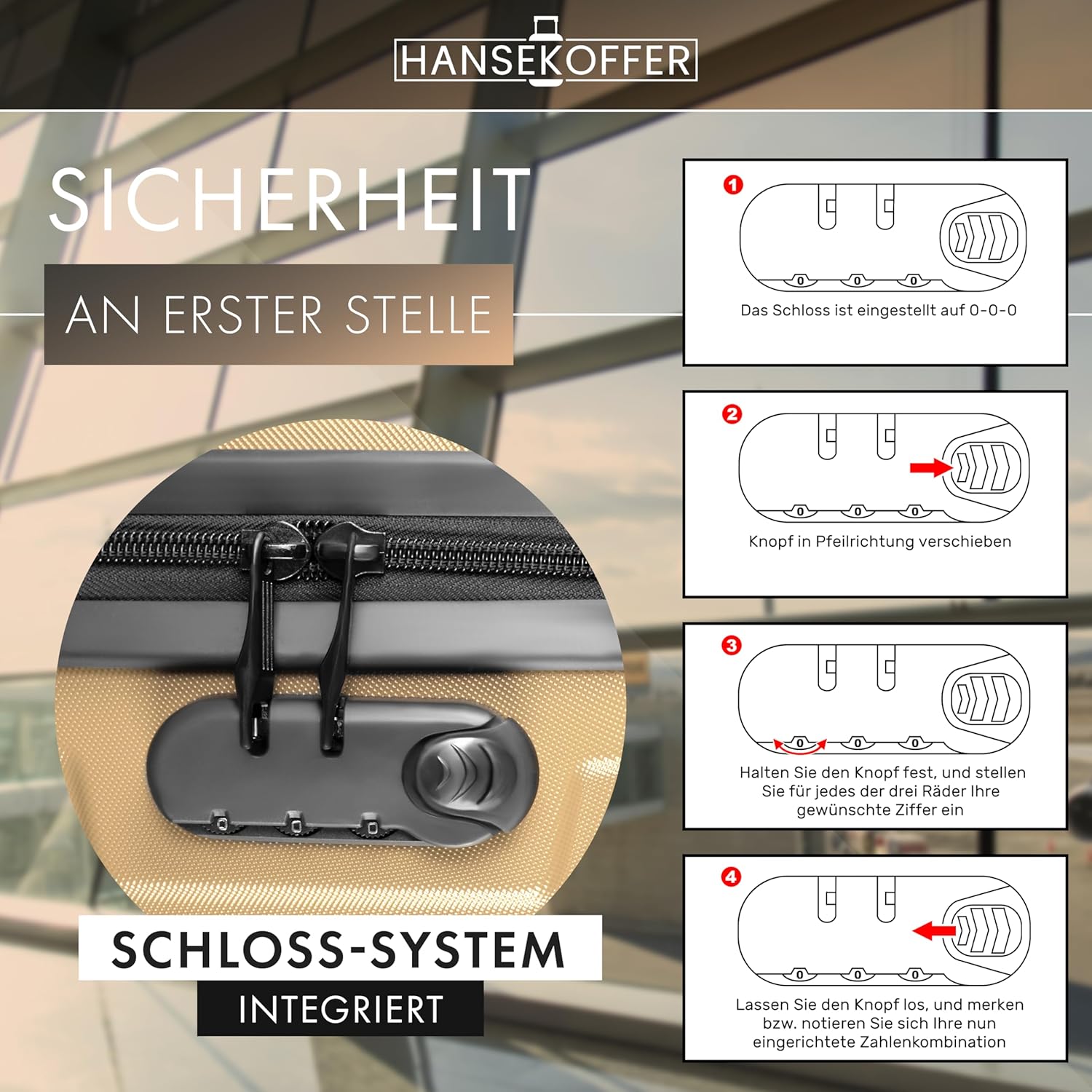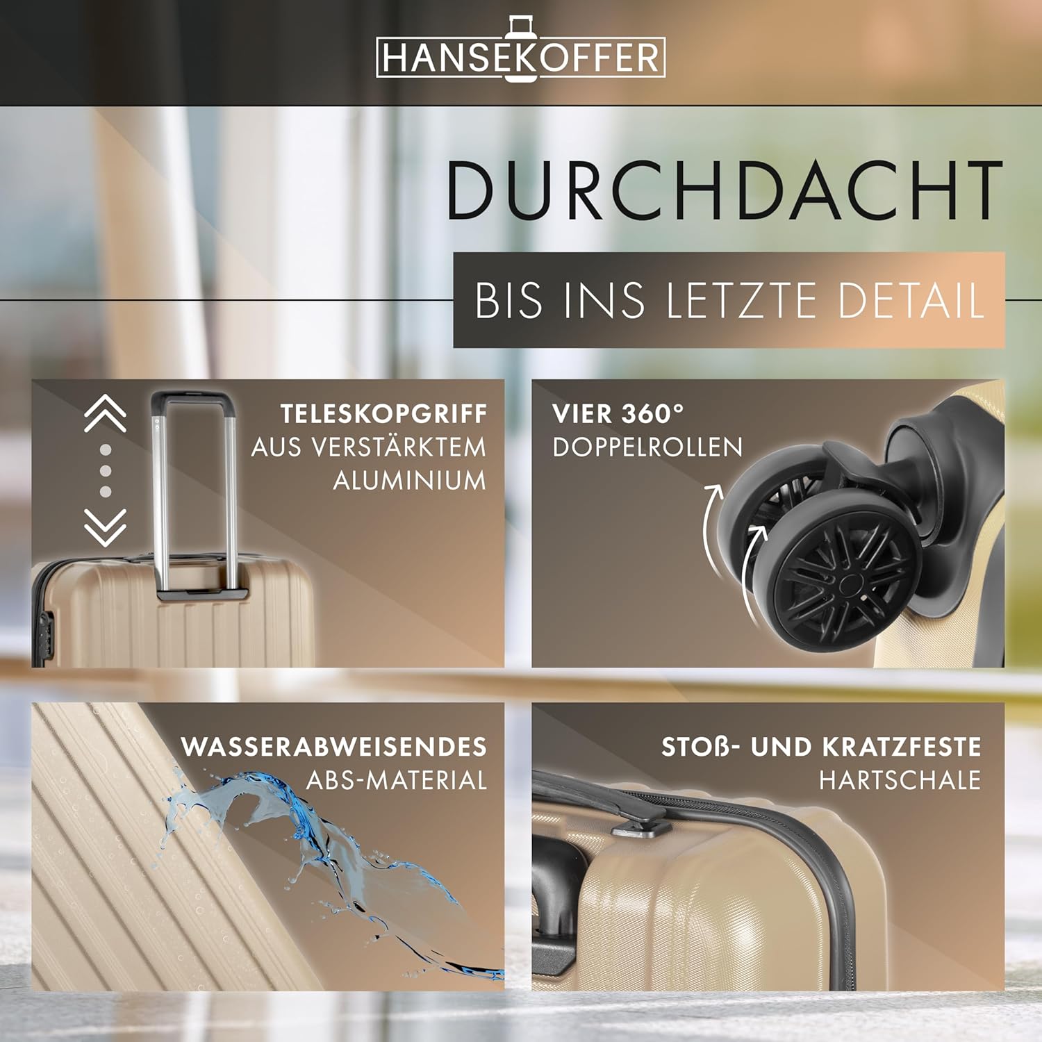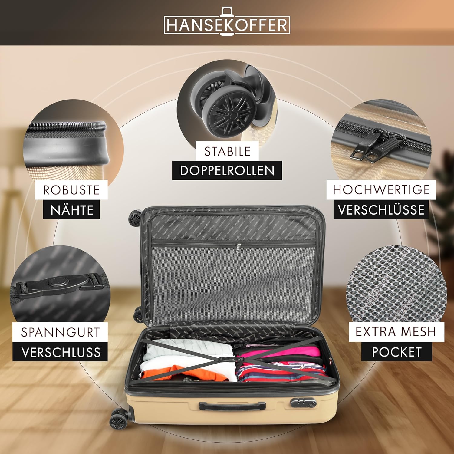 Reisen kann stressig sein, aber mit dem richtigen Gepäck ist es ein Kinderspiel. HANSEKOFFER bietet Ihnen ein 3-in-1 Kofferset, perfekt abgestimmt auf alle Ihre Reisebedürfnisse. Egal, ob Sie einen Wochenendausflug planen, geschäftlich unterwegs sind oder einen Langzeiturlaub genießen – dieses Set bietet die ideale Lösung für jeden Anlass. Warum sich mit weniger zufriedengeben, wenn Sie Qualität haben können? Unsere Koffer werden in der Türkei von einem renommierten Hersteller gefertigt, der seit 1968 für höchste Qualitätsstandards bekannt ist. Jedes Gepäckstück wird auf eine handwerkliche Fertigungsweise in Handarbeit hergestellt, die jeden Koffer zu einem Qualitätsprodukt macht.