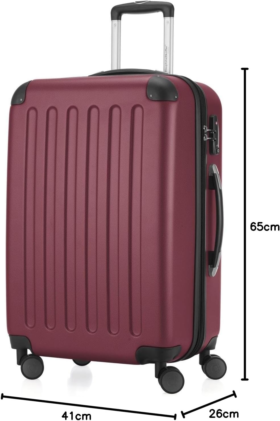 HAUPTSTADTKOFFER – SPREE – Hartschalen-Koffer Trolley Rollkoffer Reisekoffer, 4 Doppel-Rollen, 65 cm, 74 L, Burgund