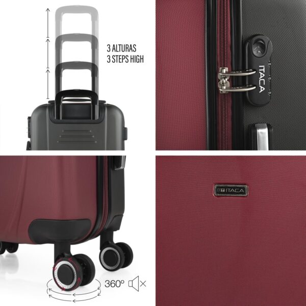 No pesa nada, buena calidad precio, varios departamentos, es perfecta! Para cuando necesitas un tamaño superior a la maleta de cabina.