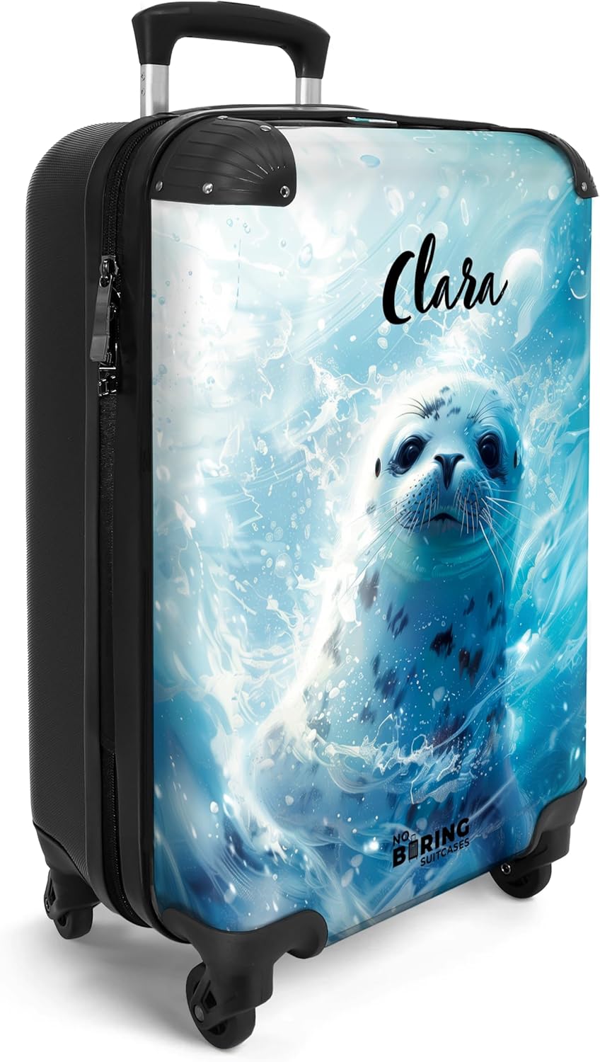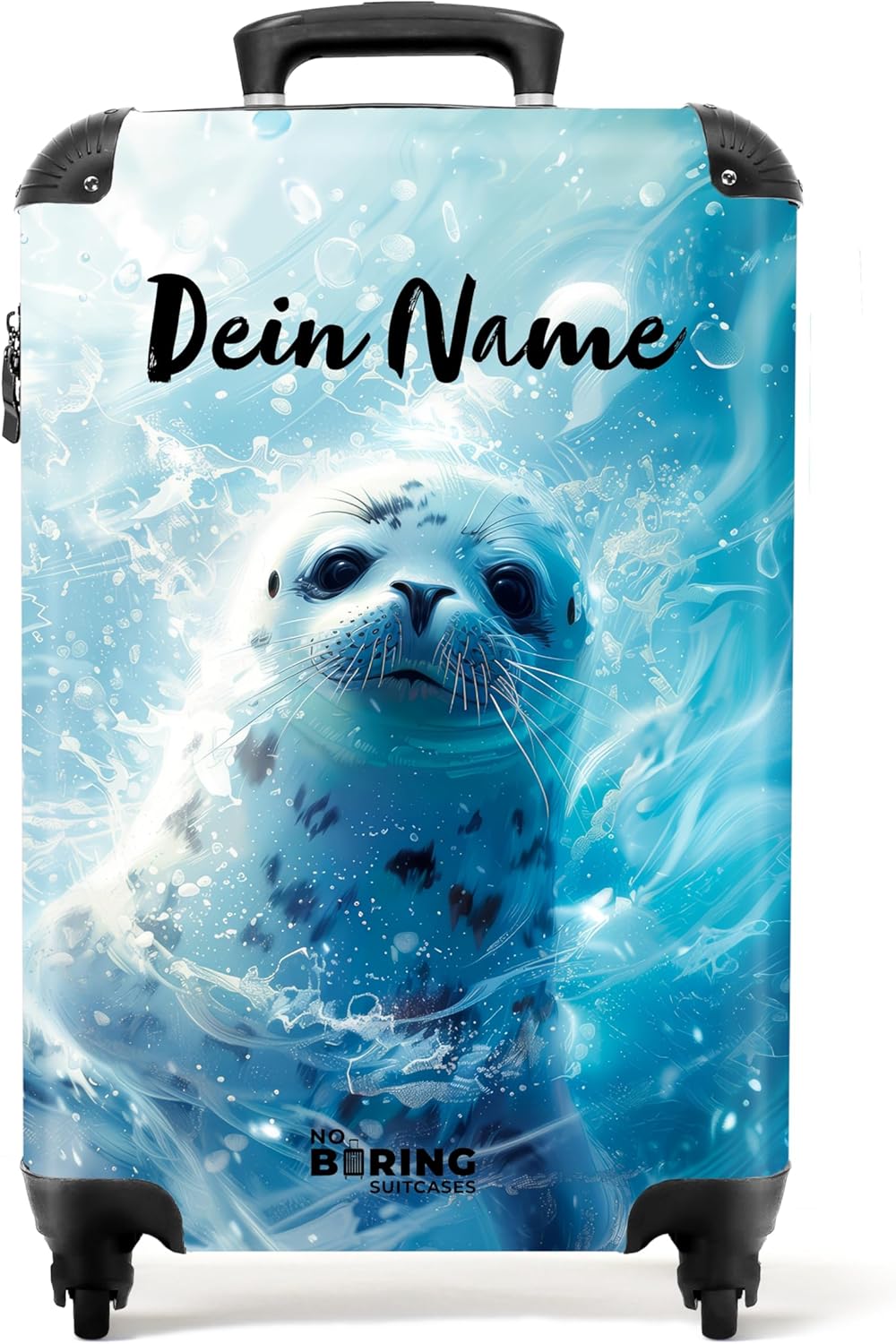 HANDGEPÄCK KOFFER: Mit den Abmessungen 55x40x20 cm und einem Gewicht von 2,6 kg ist dieser Kabinenkoffer mit einem süßen Seehundwelpen im Wasser leicht und perfekt zum Reisen geeignet.