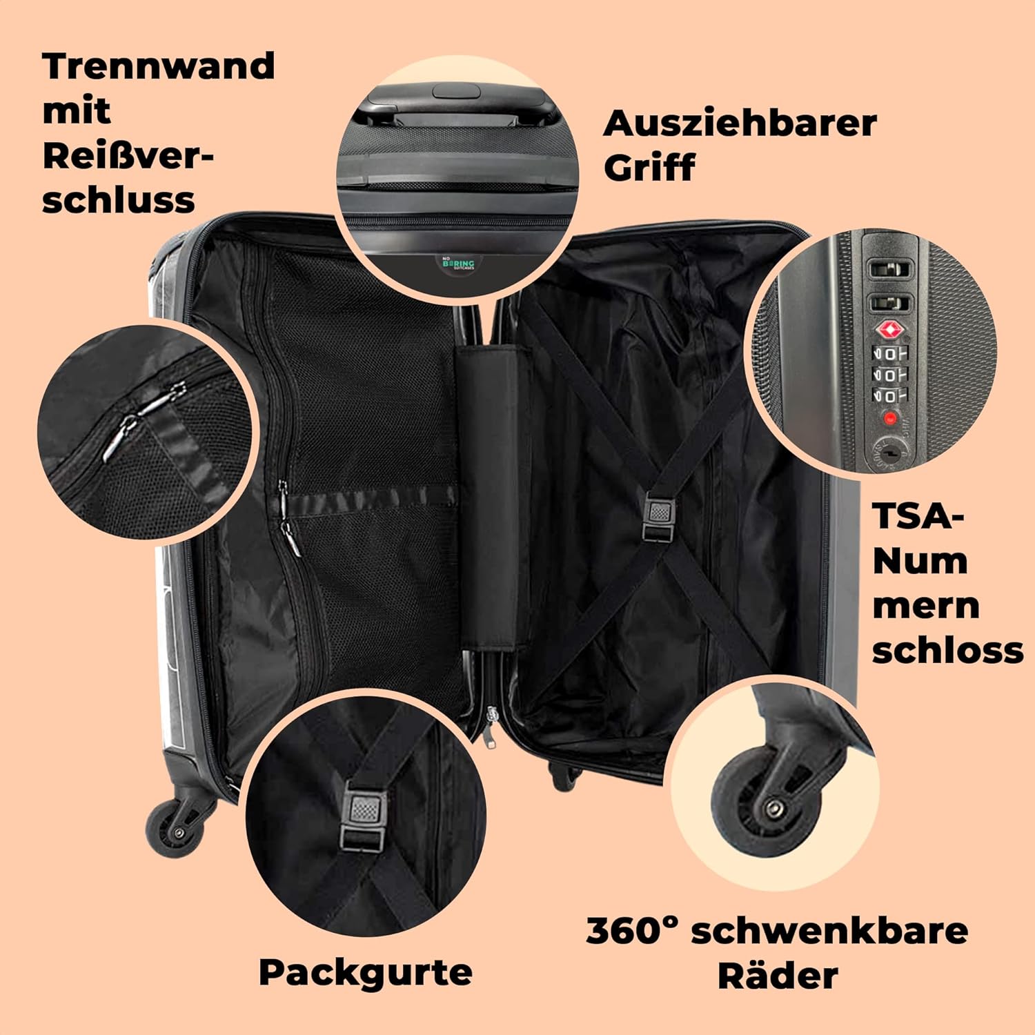 No Boring Suitcases Unser leichter Reisekoffer mit Rollen ist als Handgepäckkoffer konzipiert und entspricht den gängigen Handgepäck-Maßen von 55x40x20cm, sodass er problemlos in die Kabine mitgenommen werden kann. Der Koffer ist mit vier Rollen und einem ausziehbaren Trolleygriff ausgestattet. Der NoBoringSuitcases.com-Koffer ist nicht nur für Erwachsene geeignet, sondern auch für Kinder und Jugendliche. Die hartschalenkoffer jungen und koffer kinder jungen sind speziell für Jungs designt, um ihnen ein cooles Reiseerlebnis zu bieten. Dank der kompakten Größe eignet sich unser kleiner Koffer mit Rollen auch perfekt als Geschenk für junge Reisende. Unser Kabinenkoffer ist nicht nur leicht und praktisch, sondern auch äußerst robust, um den Anforderungen des modernen Reisens gerecht zu werden. Entscheiden Sie sich für NoBoringSuitcases.com und genießen Sie Qualität, Funktionalität und Stil in einem. Unsere Koffer & Trolleys sind die ideale Lösung für alle, die keine Kompromisse eingehen wollen.