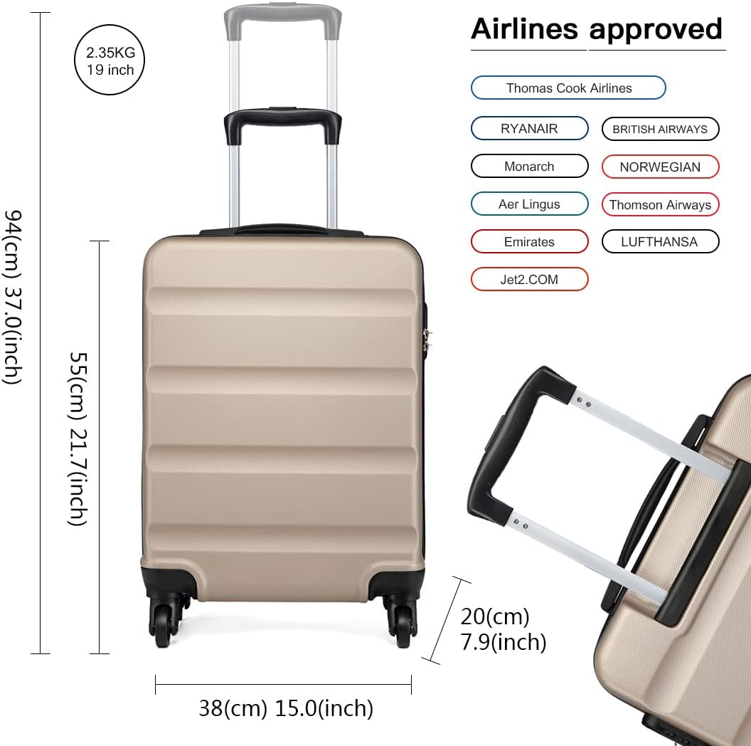 KONO Handgepäck Reisekoffer mit Rollen und TSA Schloss
