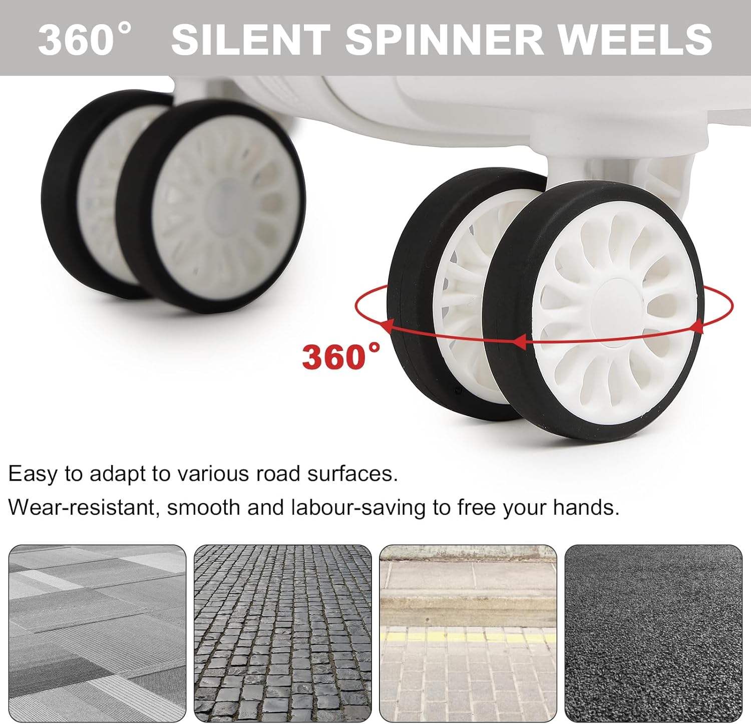 Vier 360-Grad-multidirektionale Spinner-Räder bewegen sich reibungslos und leise, wodurch Ihre Reise bequemer wird.