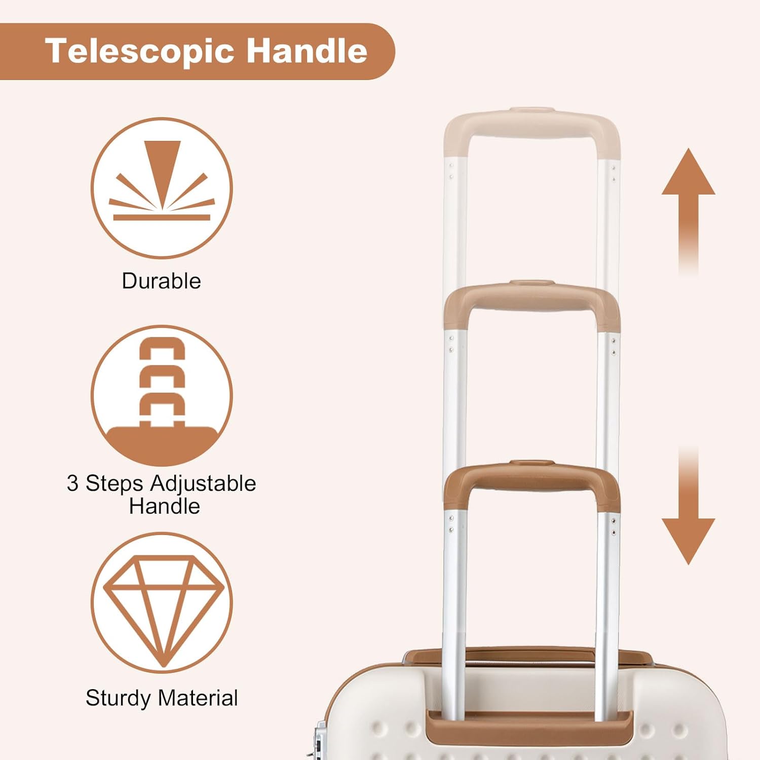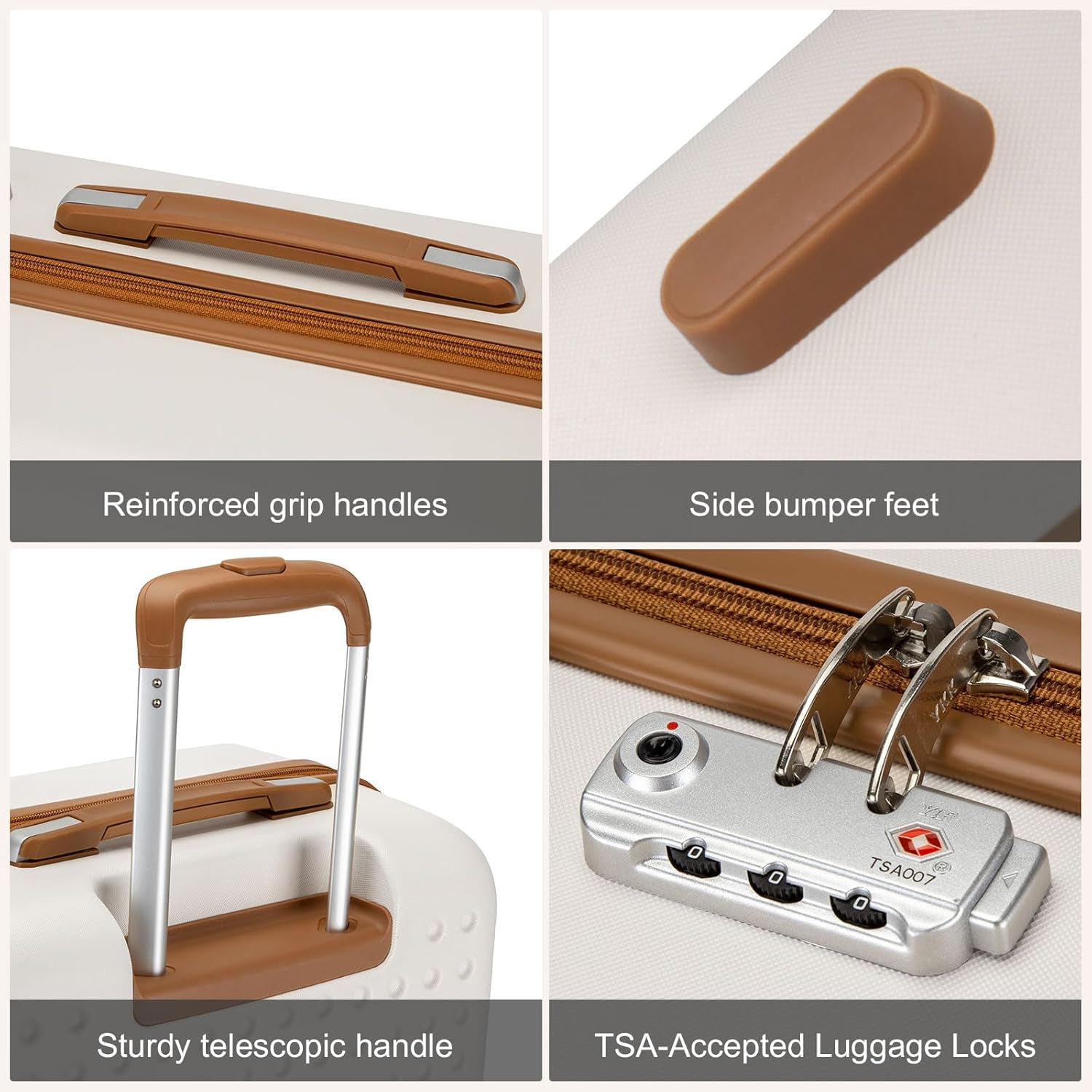 3 Höhe-Stufen Trolleygriff und Stoßfest Fußpolster – Der Hartschalenkoffer hat einen 3 Höhe-Stufen verstellbaren Griff. Der Teleskopgriff verwendet Aluminium, stabiler und haltbarer. Sie können den Koffer direkt am Boden legen, weil die 4 Fußpolster für den Koffer schützen könnte, um den Hartschalenkoffer nicht zu stoßen.