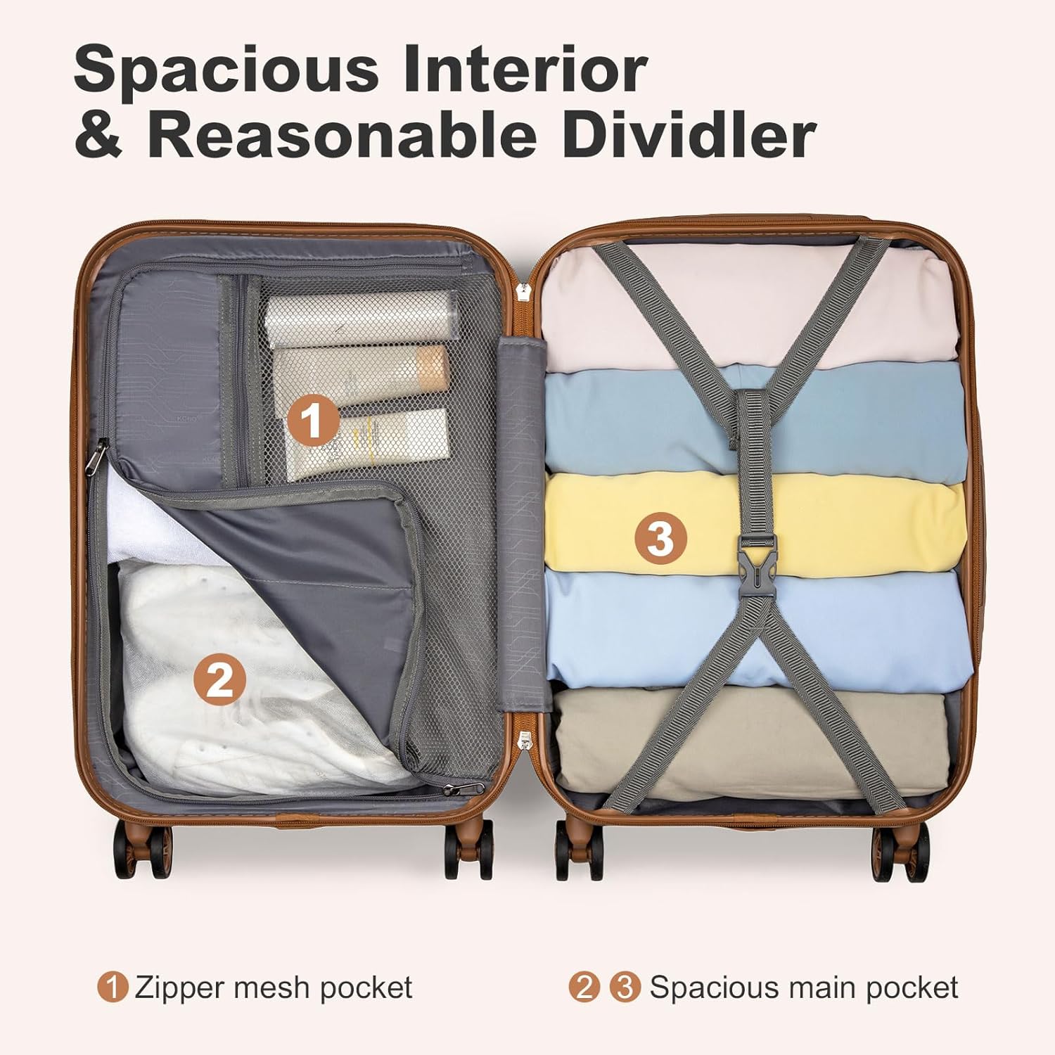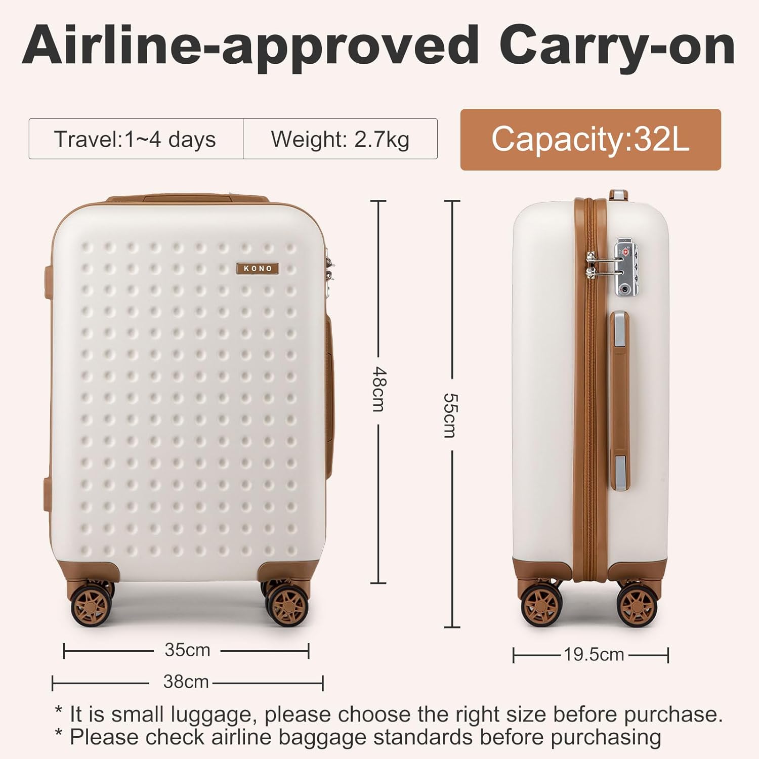 Für Meisten Fluggesellschaft Geeignet – Handgepäck Koffer ist 57*38*24cm (Rad und Griffhöhe inbegriffen), INNENABMESSUNGEN DES KASTENS: 49*35*23,5cm. Fassungsvermögen: 40L. 2,62kg der in der obenen Gepäckablage gut gelegt wird, um die Fluggebühren zu vermeiden. Rollkoffer perfekt für 3-5 Tage Urlaub. (Bitte prüfen Sie vor dem Kauf die Gepäckstandards der Fluggesellschaften. Dass es ein kleiner Koffer ist, wenn Sie eine größere Kapazität benötigen, wählen Sie bitte eine andere Größe.)