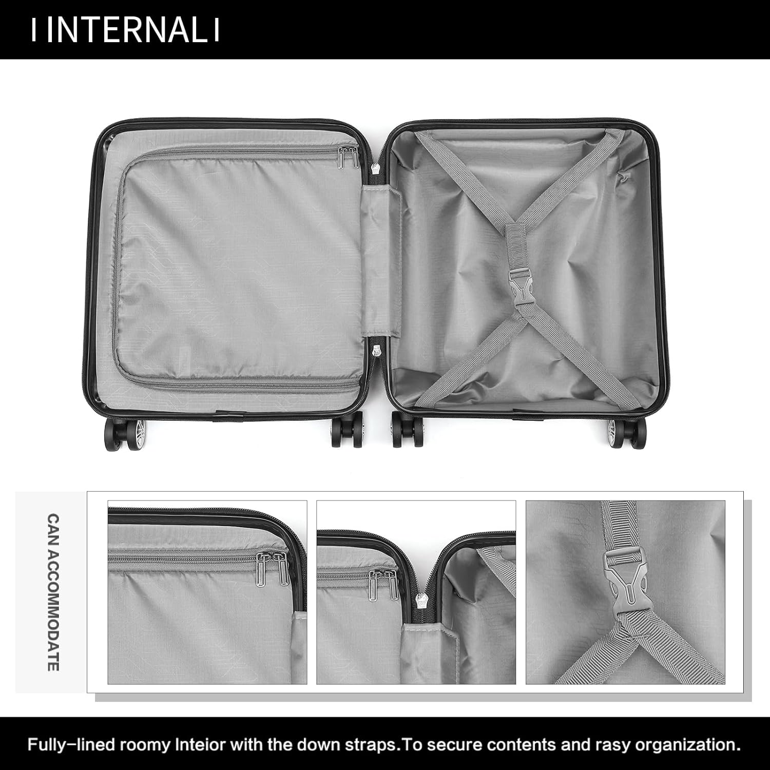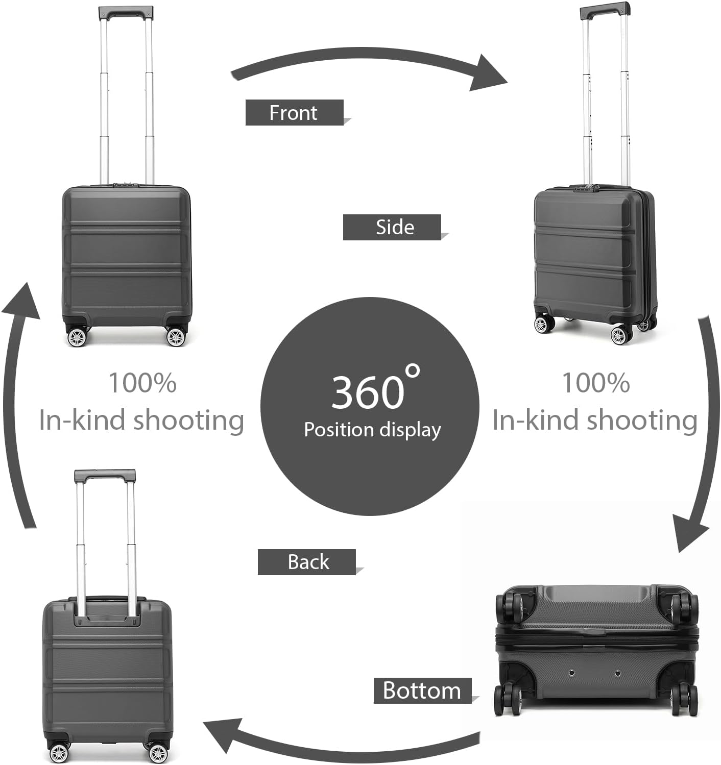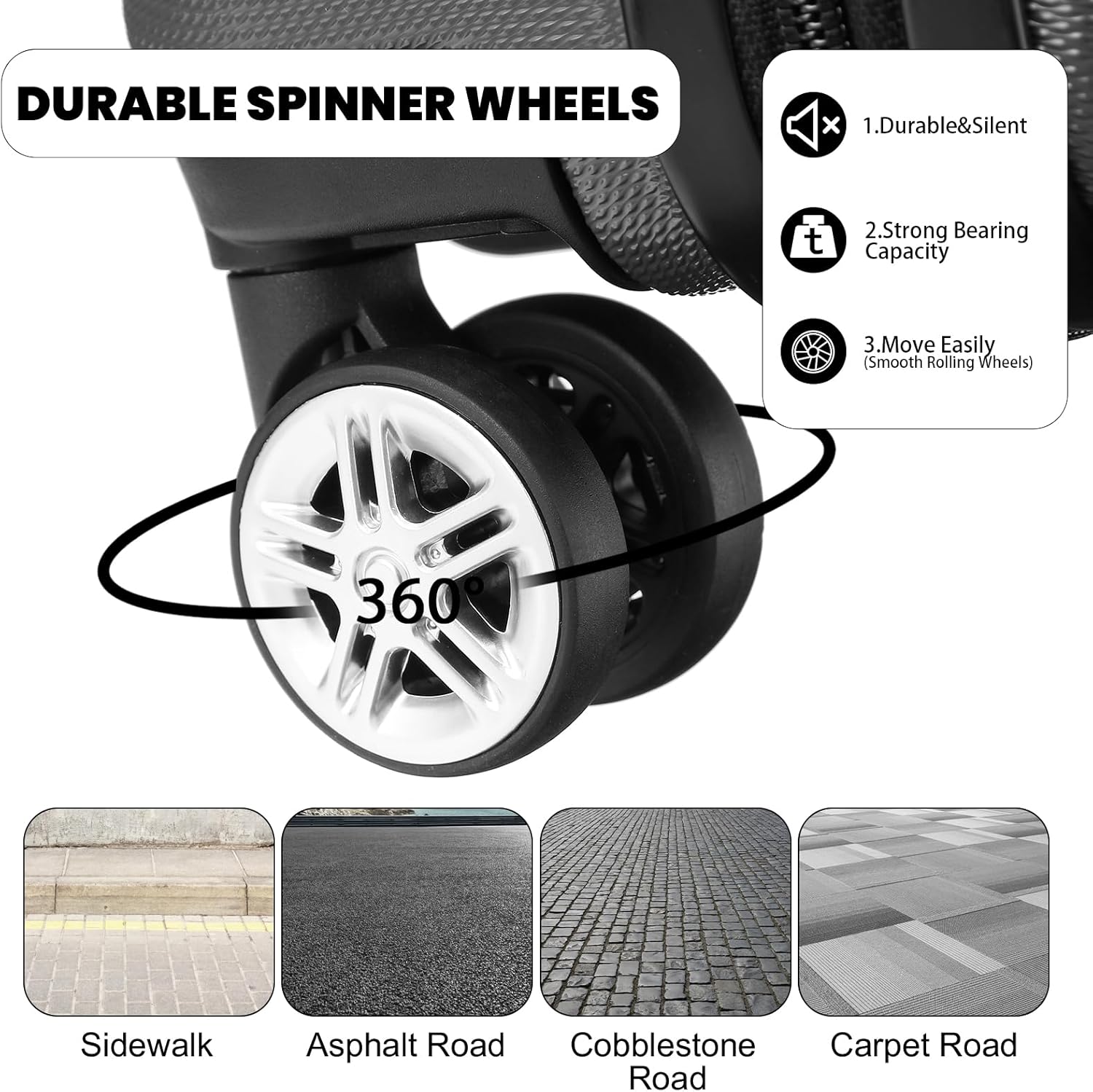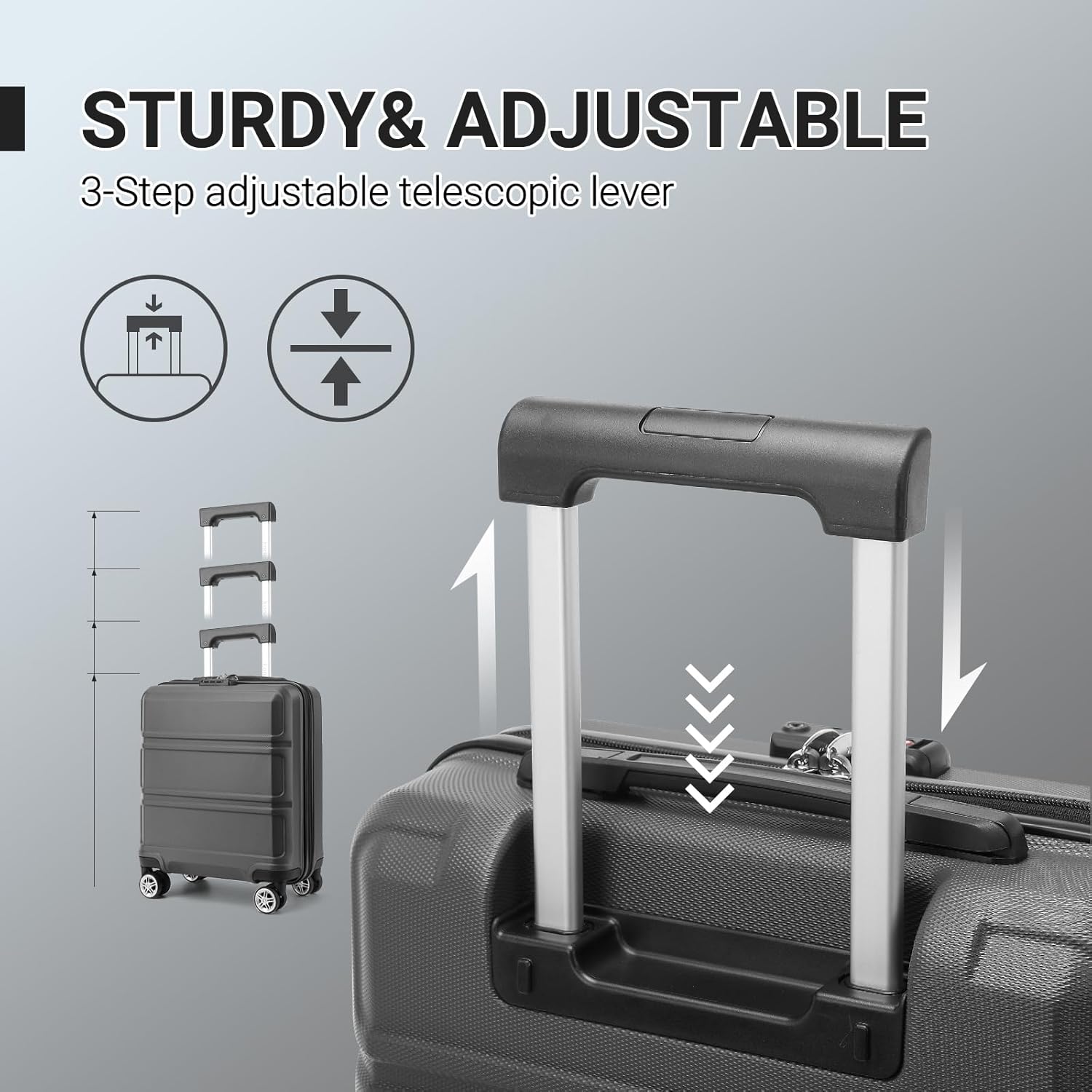 Leise Drehräder und Teleskopgriff und kurzer Griff: Die 4 Spinner-Räder aus Gummi bieten volle 360-Grad-Manövrierfähigkeit und Stabilität. Der Aluminium-Teleskopgriff ist stabiler und leichter. Der seitliche Easy-Grabgriff kann beim Anheben des Koffers mit schwerem Gewicht wirklich praktisch sein.