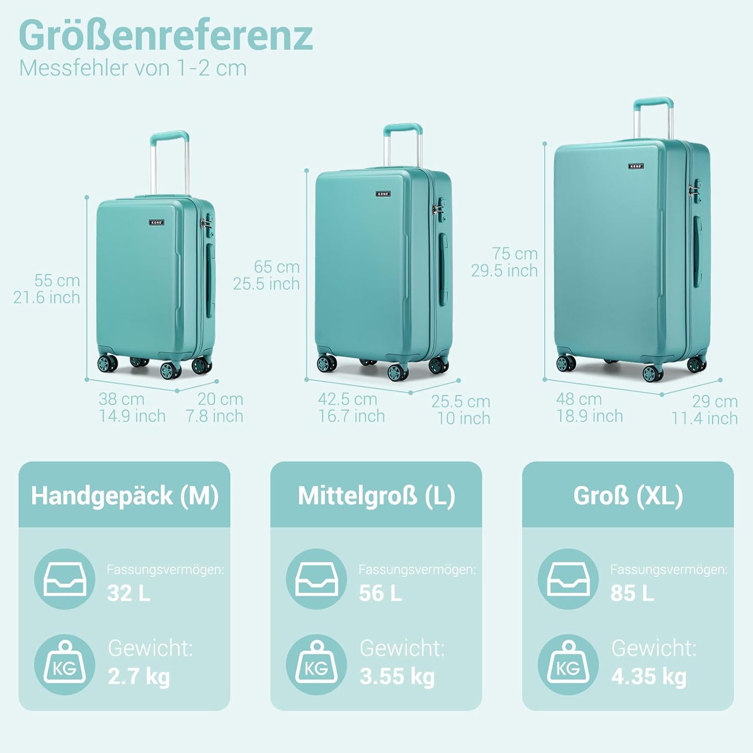 Ich bin sehr zufrieden mit dem Handgepäck Koffer von KONO.Er ist angenehm leicht, lässt sich dank der vier Rollen mühelos bewegen und ist ideal für kurze Trips oder als Bordgepäck.Die Maße passen perfekt für viele Airlines, und trotz der kompakten Größe bietet er genug Platz für das Nötigste.Besonders gut gefällt mir die stabile Hartschale – sie wirkt hochwertig und schützt den Inhalt zuverlässig.Auch das TSA-Schloss ist ein praktisches Extra.Insgesamt ein handlicher, gut verarbeiteter Koffer, den ich jederzeit wieder kaufen würde.