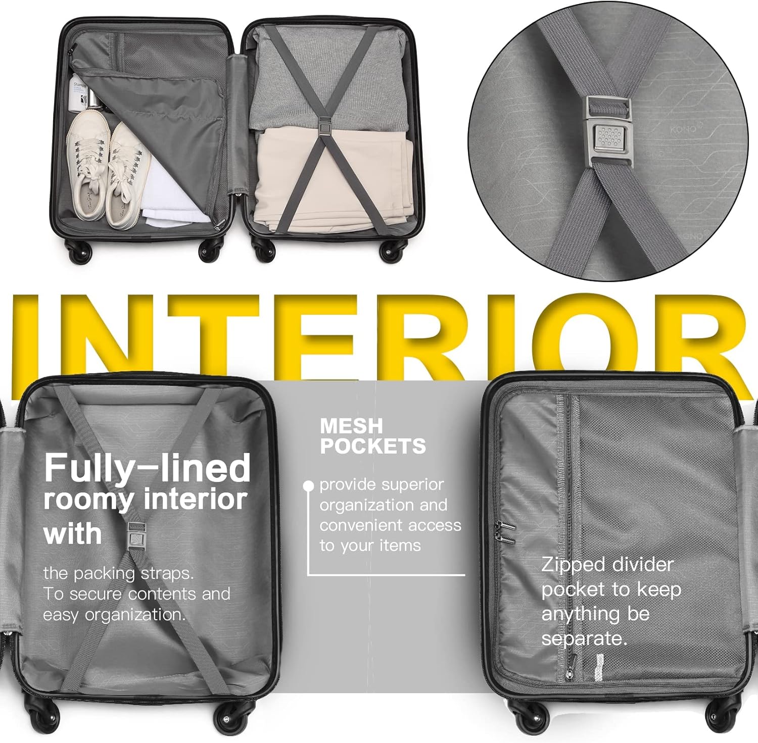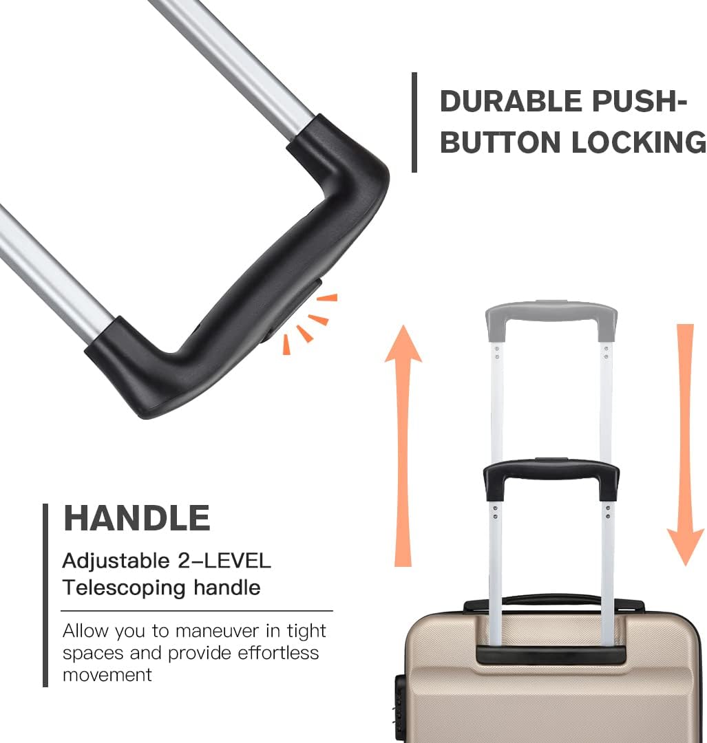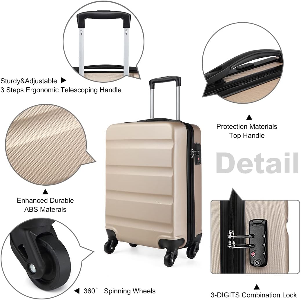 Kono Kabinengepäck Hartschale ABS Handgepäck mit 4 Spinnrollen und Zahlenschloss