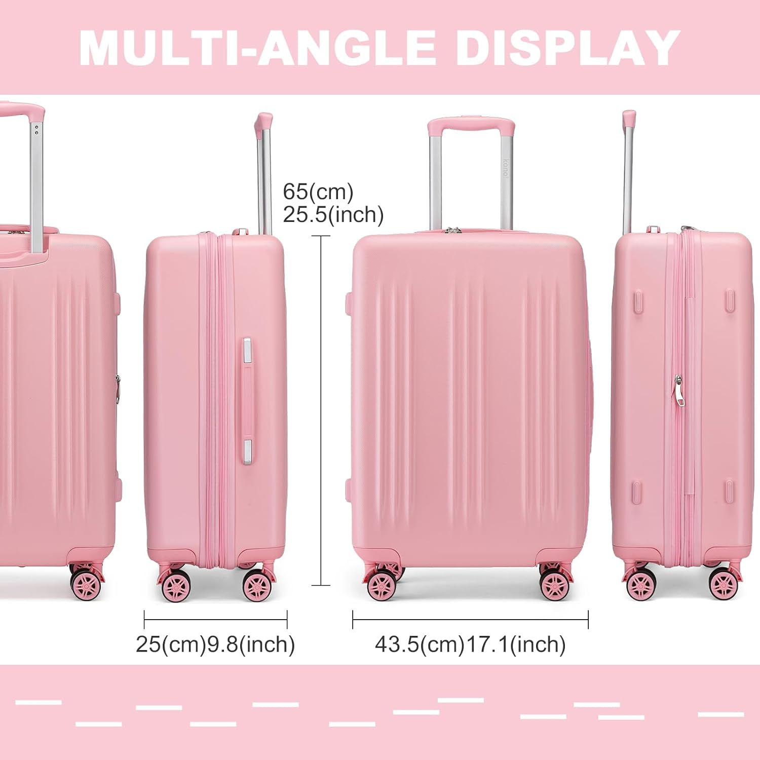 KONO Koffer Trolleys Mittelgroß 65cm Hartschalenkoffer Erweiterbar Mittelgroß leicht Reisekoffer mit 4 Rollen und TSA-Schloss, 65×43.5x25cm, 63L, Rosa