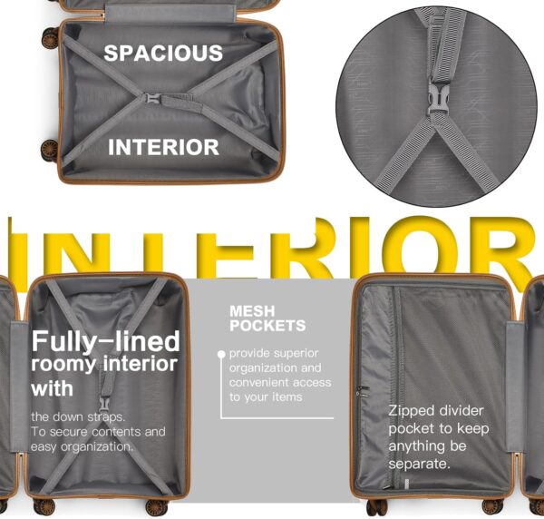 【TSA-Schloss & 4 Spinner-Räder】Das seitlich angebrachte TSA-Schloss dient als Diebstahlschutz und stellt sicher, dass nur Sie und das Sicherheitspersonal des Flughafens einfachen Zugang zu Ihren Sachen haben, während Sie reisen. Die 360-Grad-Spinner-Räder bieten große Manövrierfähigkeit in mehrere Richtungen.
