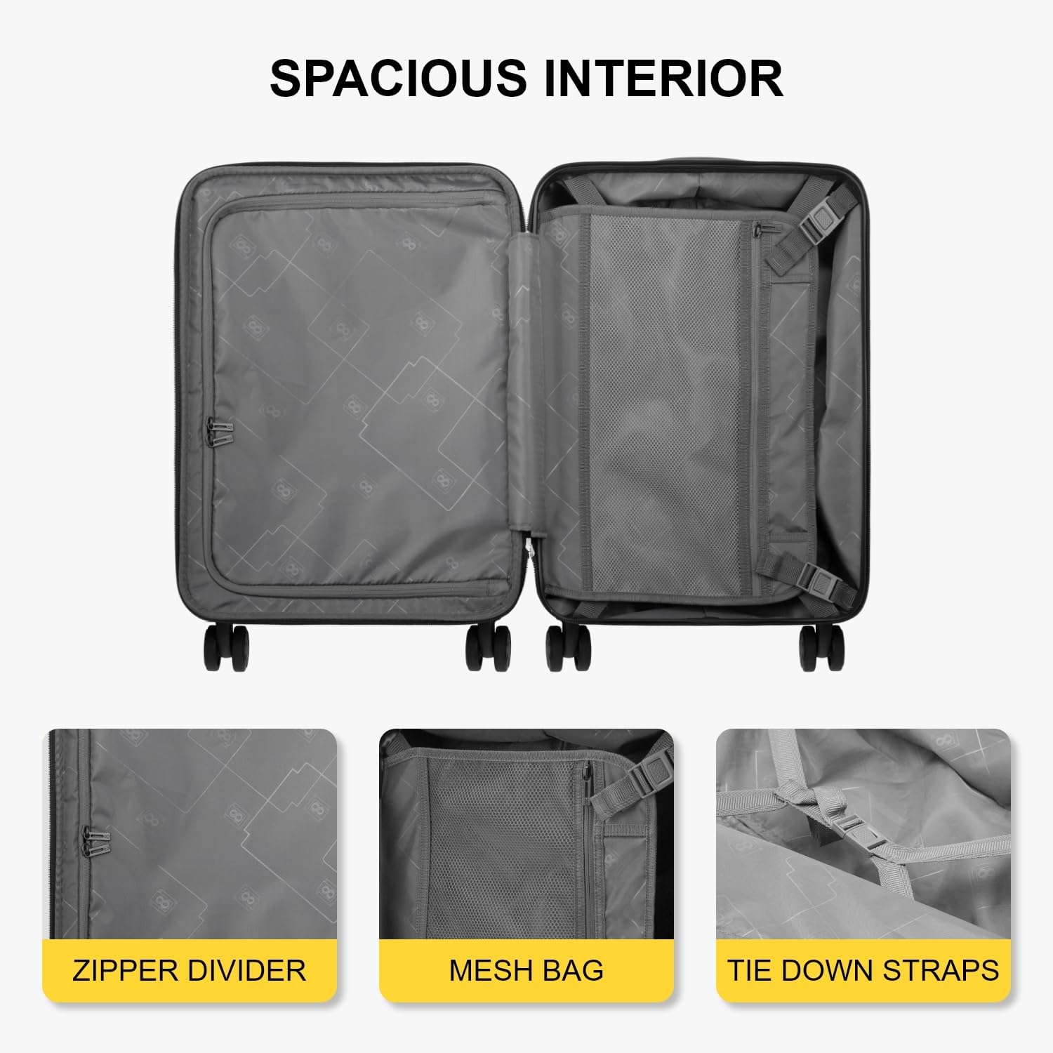 Solid and light luggage, the wheels are very swift and the handle is solid. Great to have a front pocket to access some things that can also lock. Looks good and can expand. Good to have the inside separations.