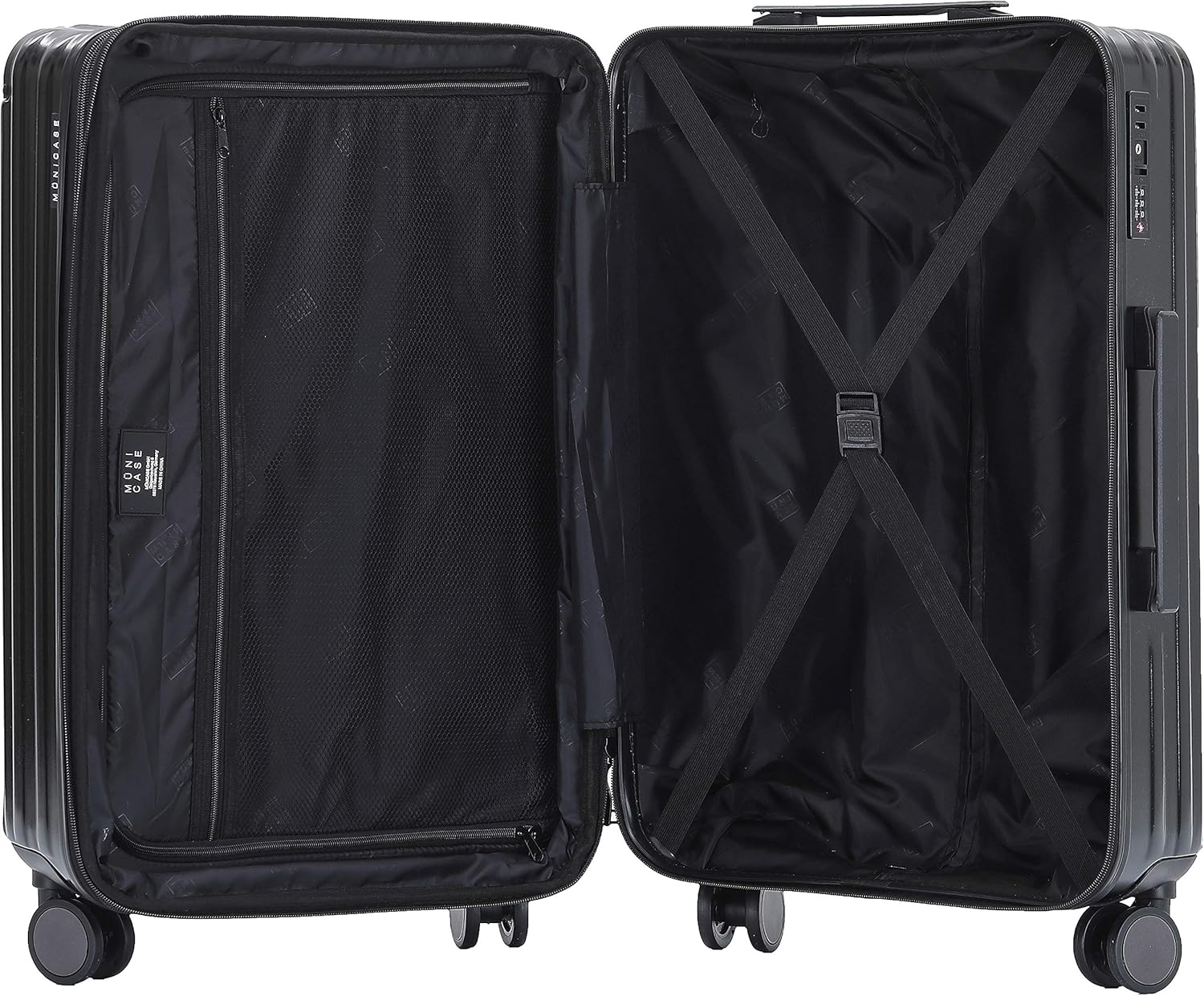 【GERÄUMIGER INNENRAUM】: Kleiner Koffer mit komplett gefüttertem Innenraum mit Trennwand. Flexibler Zwischenboden mit drei separaten Fächern unterteilt den Kofferinnenraum und Kreuzgurt sichert den Inhalt.