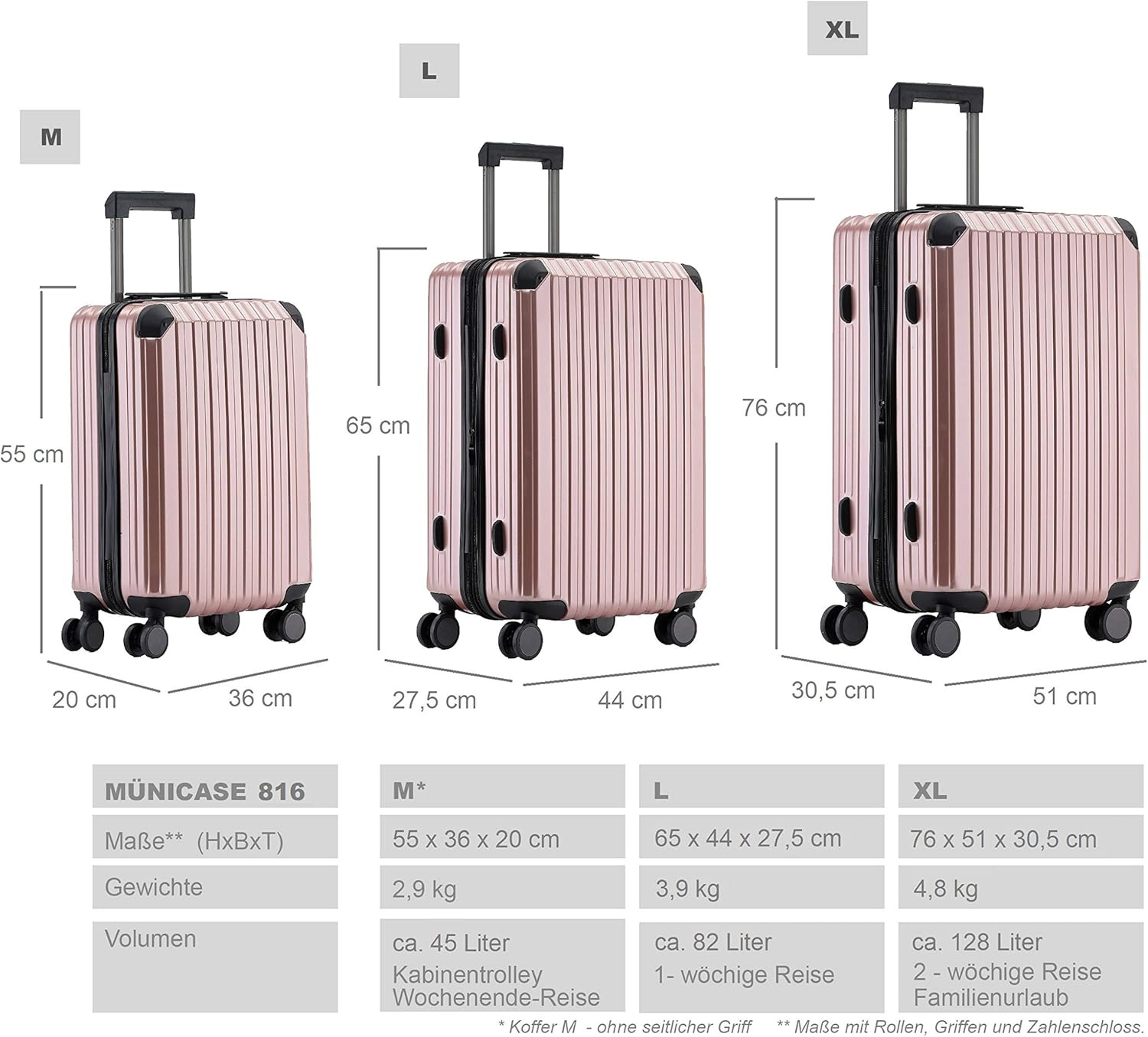 Münicase Koffer sind bekannt für ihre hervorragende Qualität und Zuverlässigkeit. Diese Koffer zeichnen sich durch ihr robustes Design und die Verwendung hochwertiger Materialien aus, die für Langlebigkeit und Widerstandsfähigkeit sorgen. Sie bieten großzügigen Stauraum und durchdachte Innenaufteilungen, die das Packen erleichtern und Ordnung halten. Zudem sind sie mit leisen, leichtgängigen Rollen und ergonomischen Griffen ausgestattet, die den Transport komfortabel machen. Münicase Koffer sind somit eine ausgezeichnete Wahl für Reisende, die Wert auf Stil, Funktionalität und Strapazierfähigkeit legen.