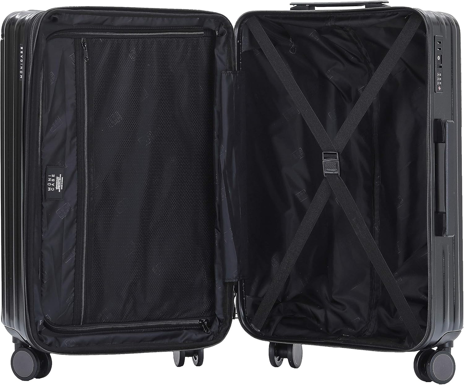 【GERÄUMIGER INNENRAUM】: Koffer mit komplett gefüttertem Innenraum mit Trennwand. Flexibler Zwischenboden mit drei separaten Fächern unterteilt den Kofferinnenraum und Kreuzgurt sichert den Inhalt.